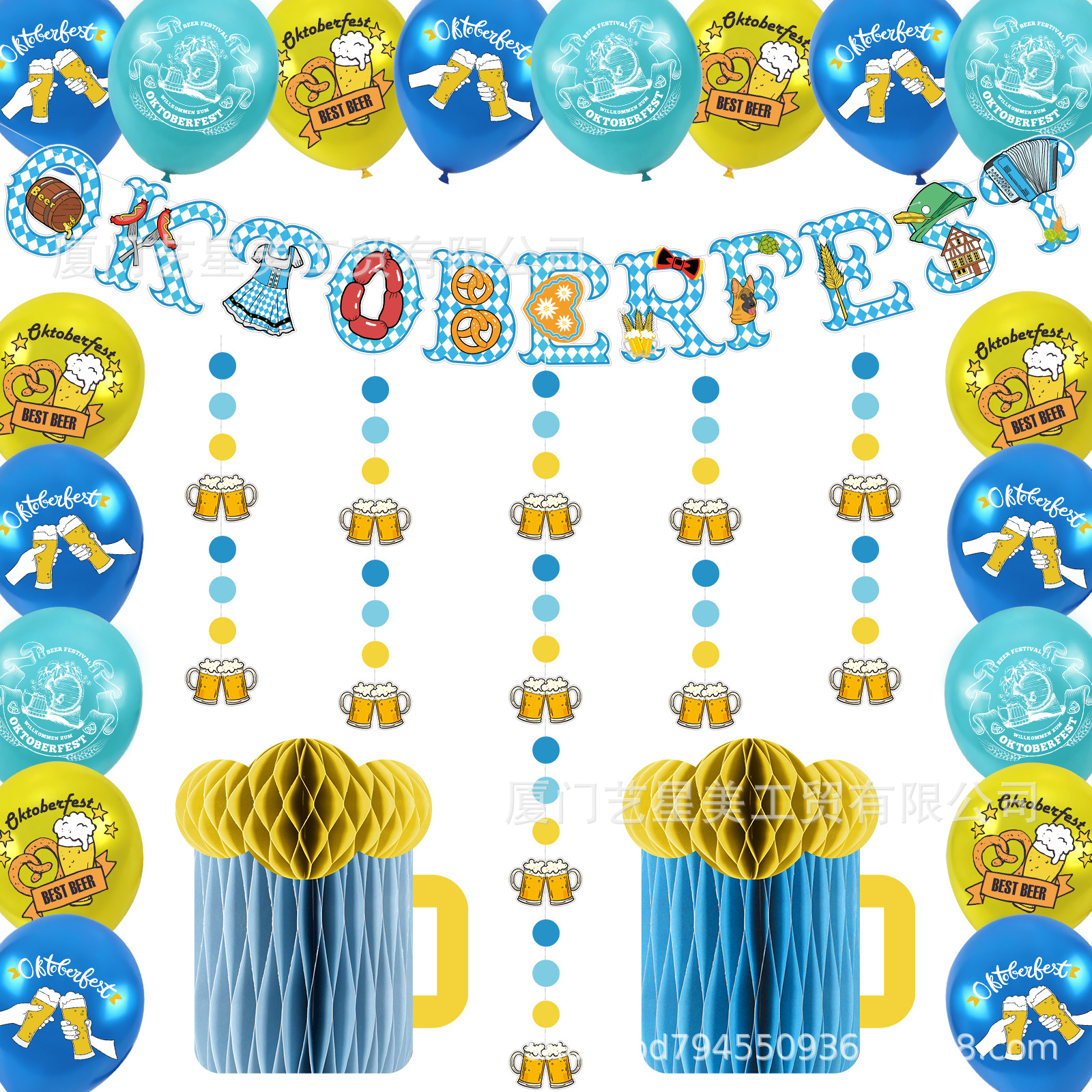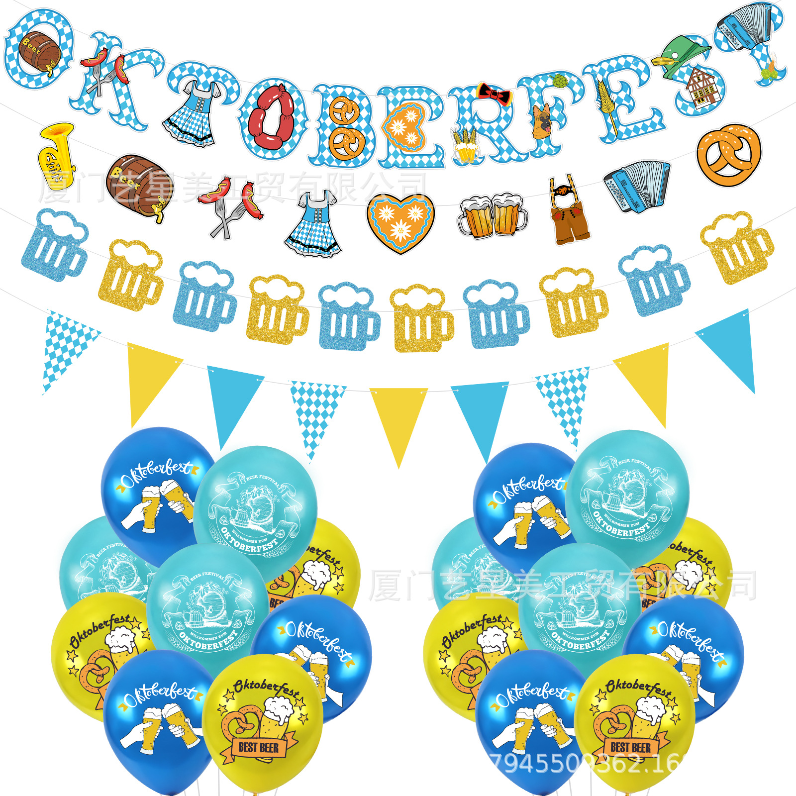 产品详情:慕尼黑啤酒节主题派对背景装饰用品套装拉旗插旗啤酒气球跨境布置