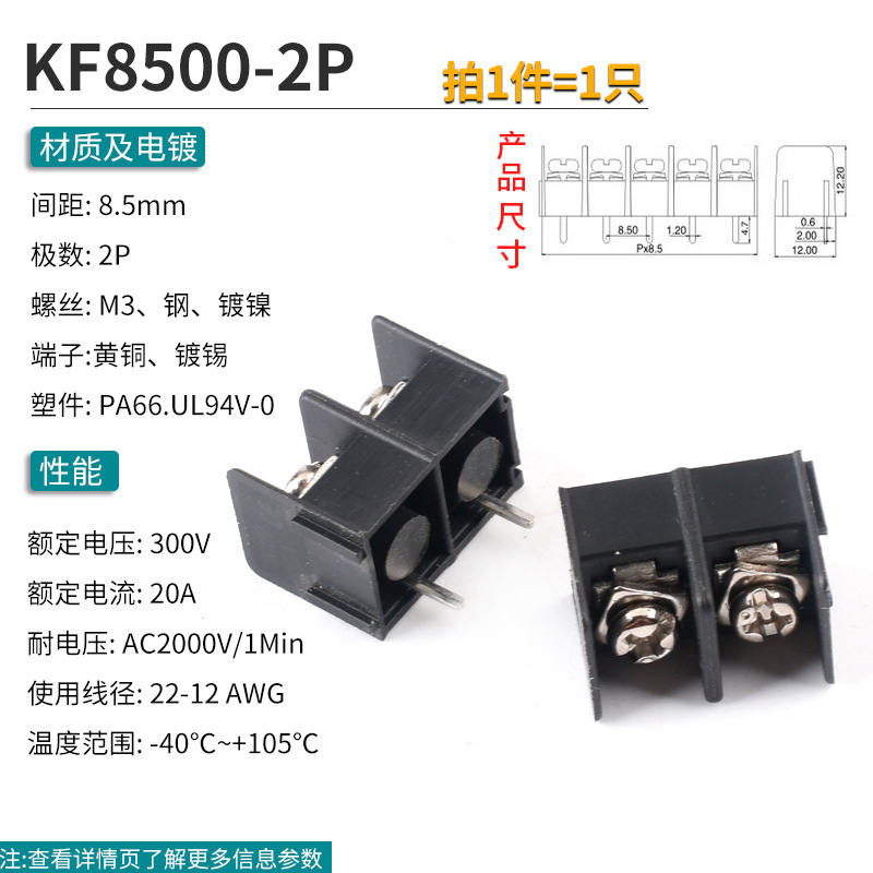 KF8500-2P/3P/4P 터미널 8.5mm 피치 터미널 블랙 울타리 스플라이스스토어 가기