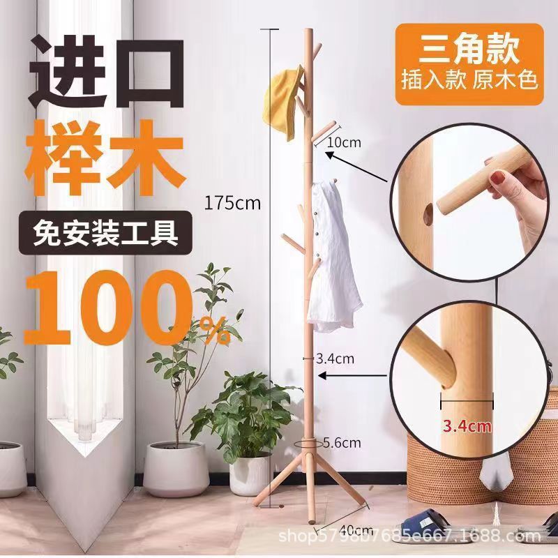 단단한 나무 옷걸이, 바닥 옷걸이, 침실 가정용 옷걸이, 간단한 수직 옷걸이, 인터넷 연예인 실내 옷걸이스토어 가기