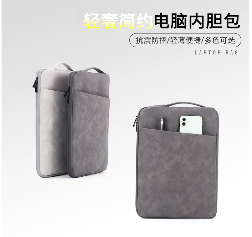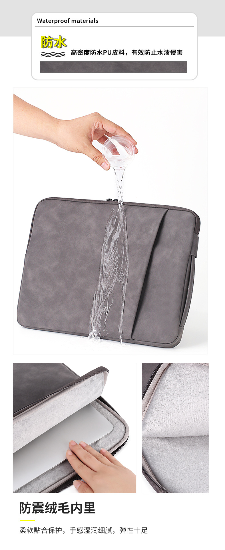 고급스러운 PU 양가죽 발수 플러시 충격 방지 휴대용 라이너 가방 휴대용 대용량 노트북 가방