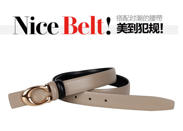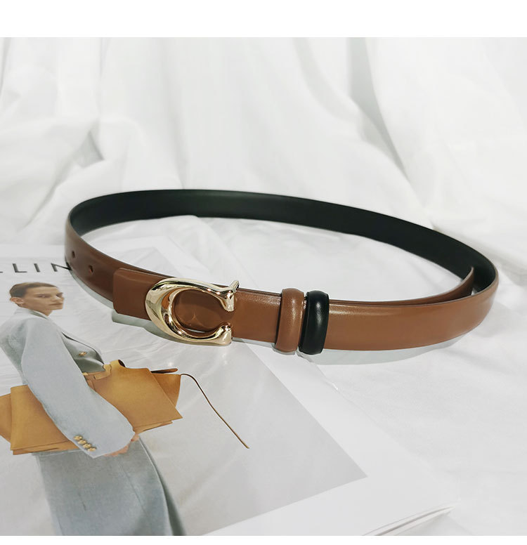 C 자형 버클 양면 여성용 벨트 유행 올 매치 장식 얇은 벨트 여성용 간단한 정품 가죽 한국 스타일 바지 벨트 패션스토어 가기