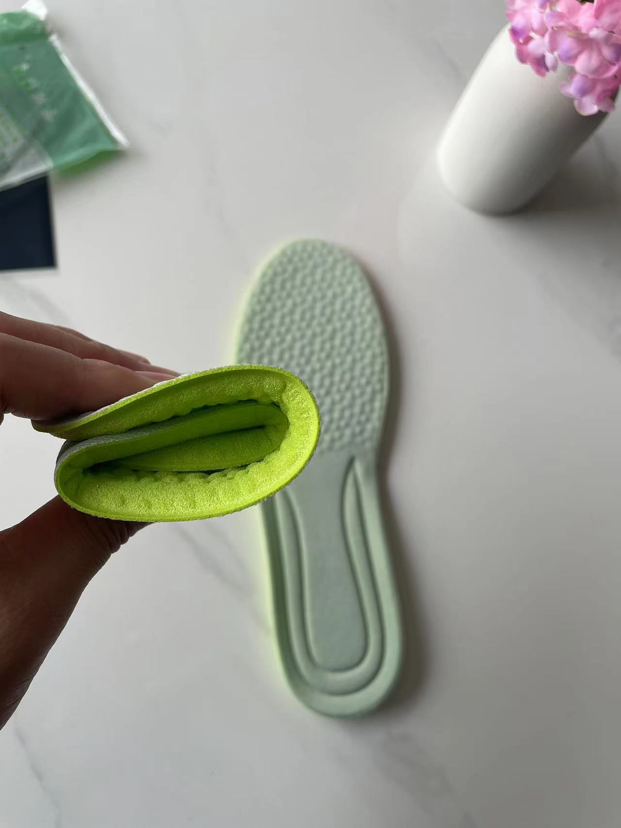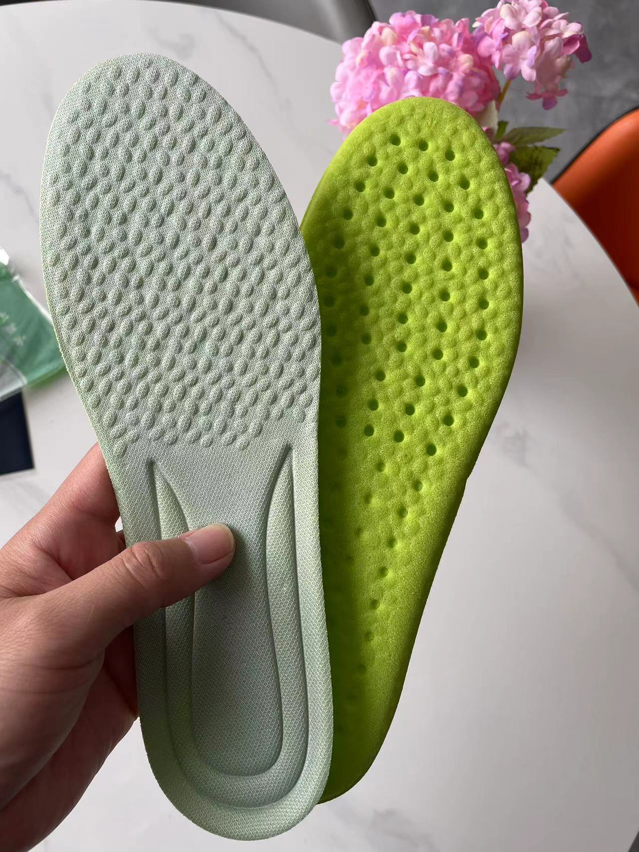 배설물 느낌 스포츠 편안한 깔창 남성과 여성의 깔창은 오랫동안 피곤하지 않습니다. 슈퍼 소프트 팝콘 깔창 땀 흡수성 통기성