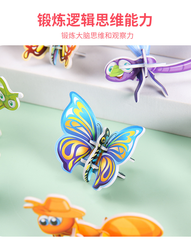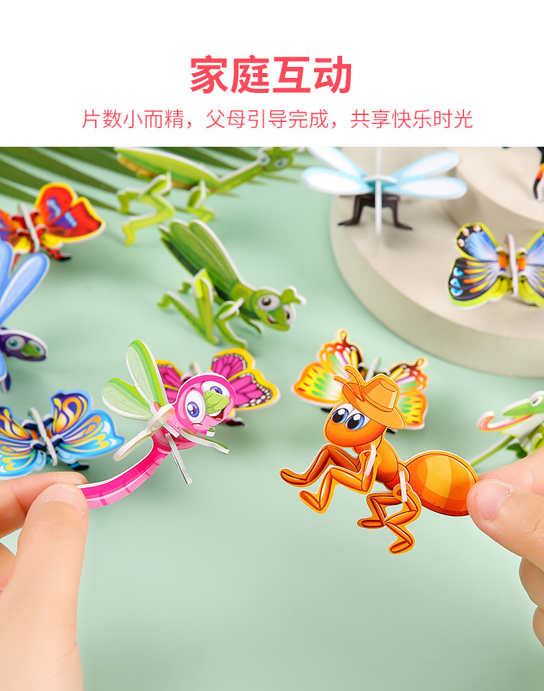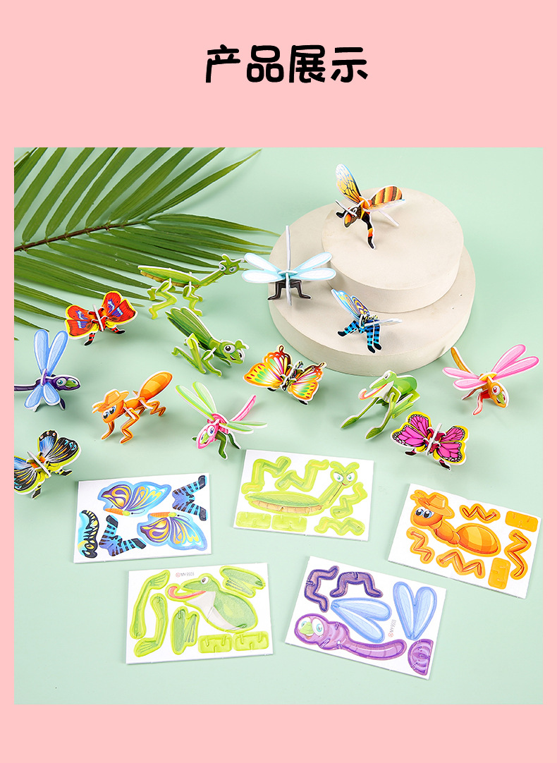 어린이 종이 3 차원 곤충 직소 퍼즐 장난감 수제 DIY 직소 퍼즐 장난감 유치원 선물 도매