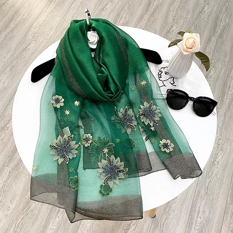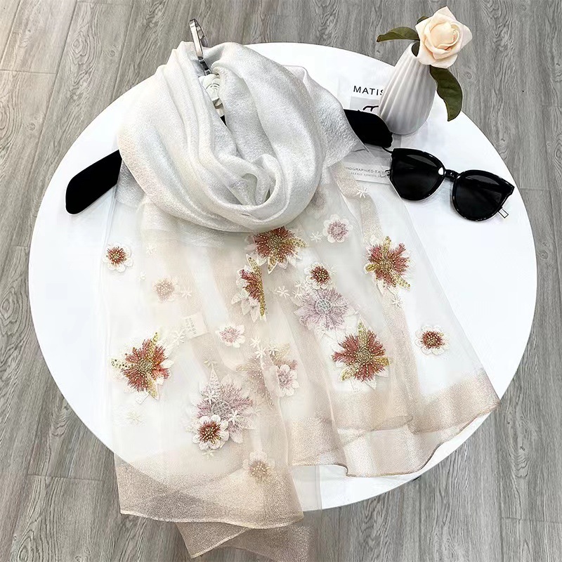 실크 스카프 여성 항저우 실크 자수 실크 스카프 고급 중국 스타일 자수 스카프 라이브 새로운 핫 드릴링 자외선 차단제 숄