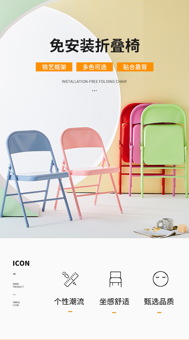 공장 도매 접이식 의자 스타일 등받이 의자 홈 의자 휴대용 사무실 의자 회의 의자 마카롱 야외 의자