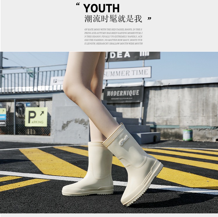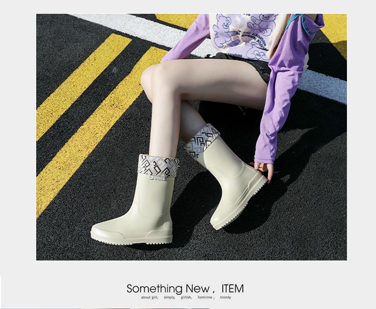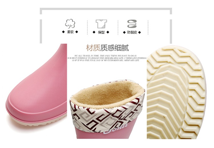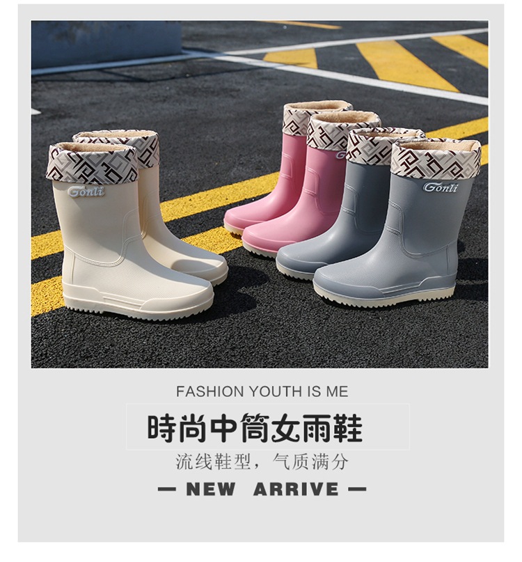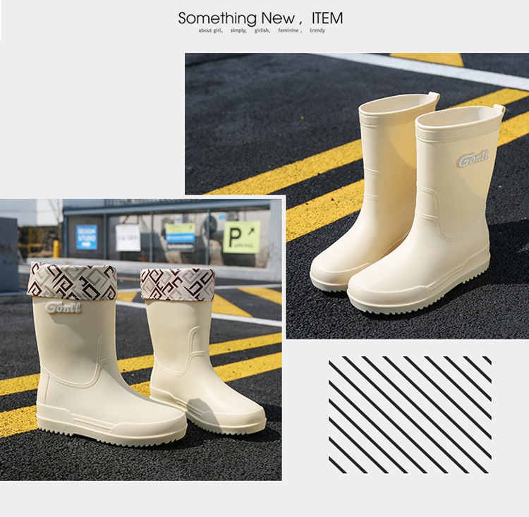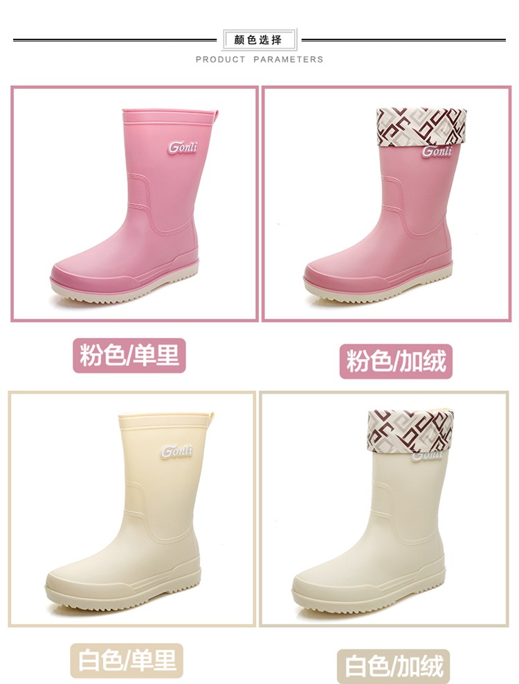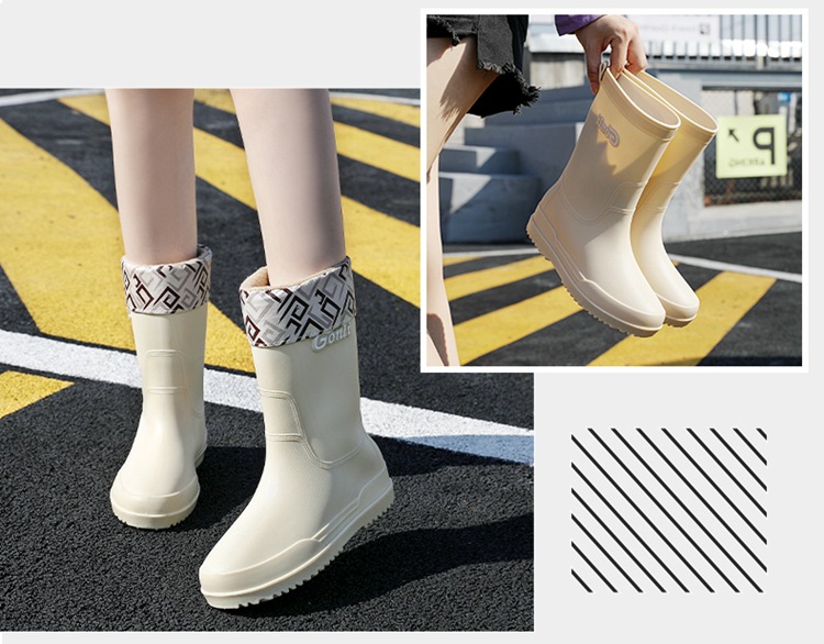 여성용 장화 미드 배럴 유행 야외 방수 장화 일본식 고층 원피스 벨벳 따뜻한 미끄럼 방지 내마모성 여성용 워터 슈즈