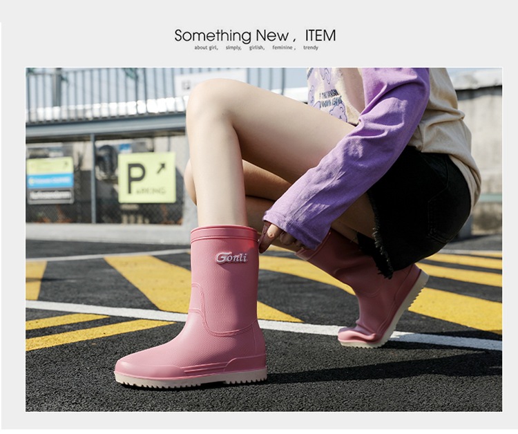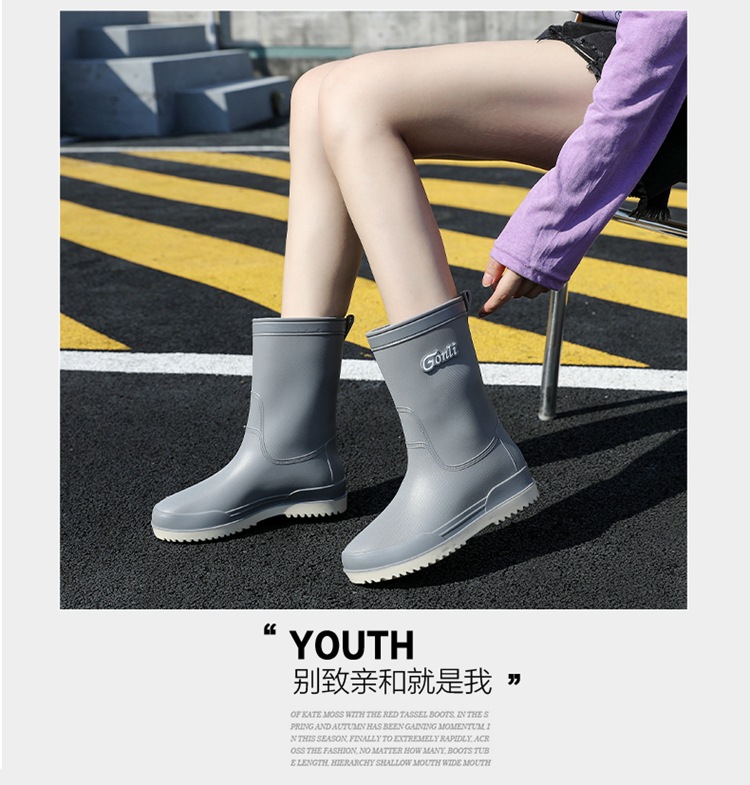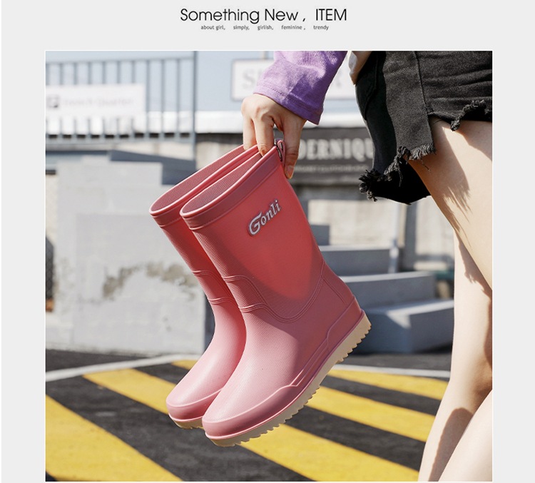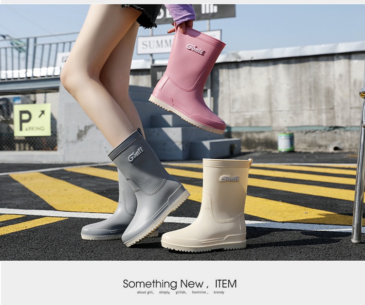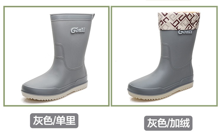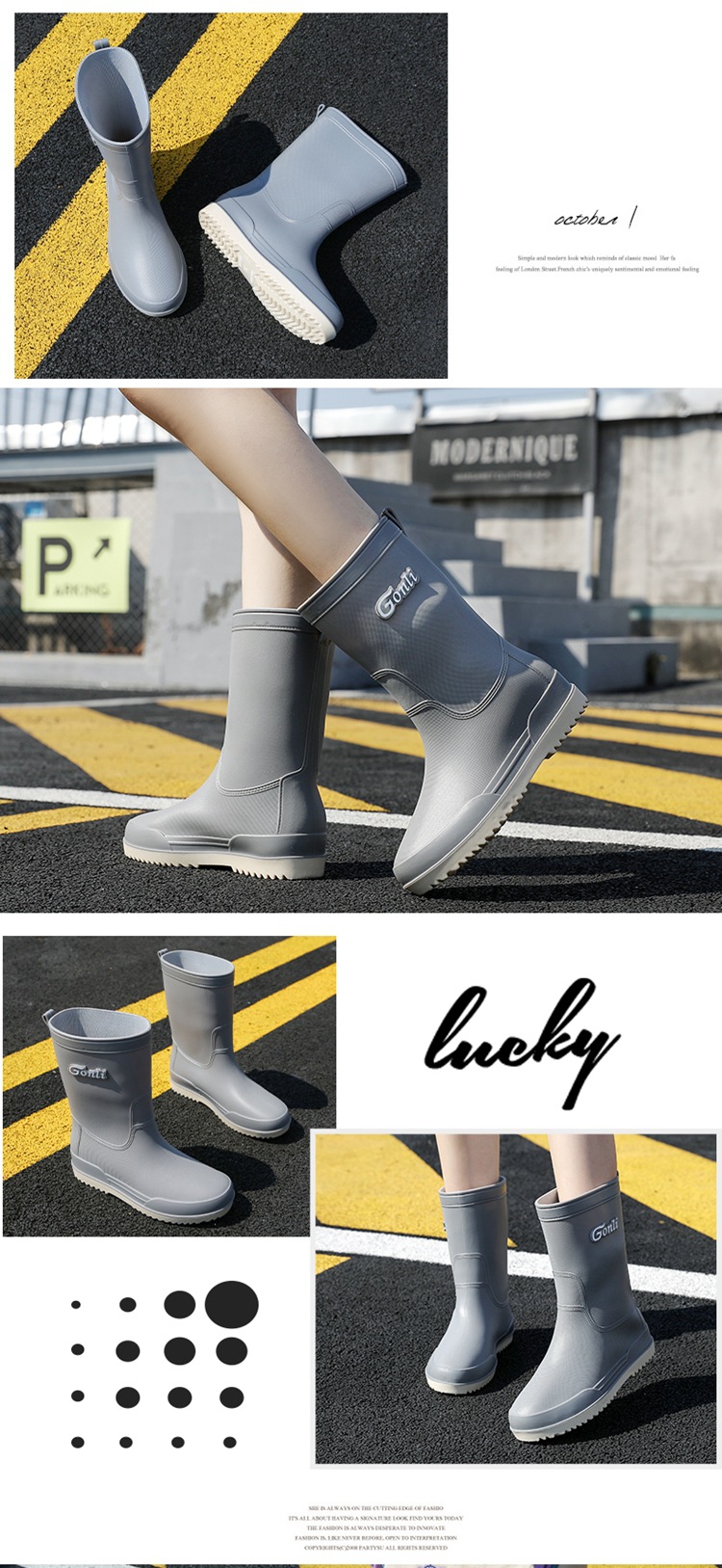 여성용 장화 미드 배럴 유행 야외 방수 장화 일본식 고층 원피스 벨벳 따뜻한 미끄럼 방지 내마모성 여성용 워터 슈즈