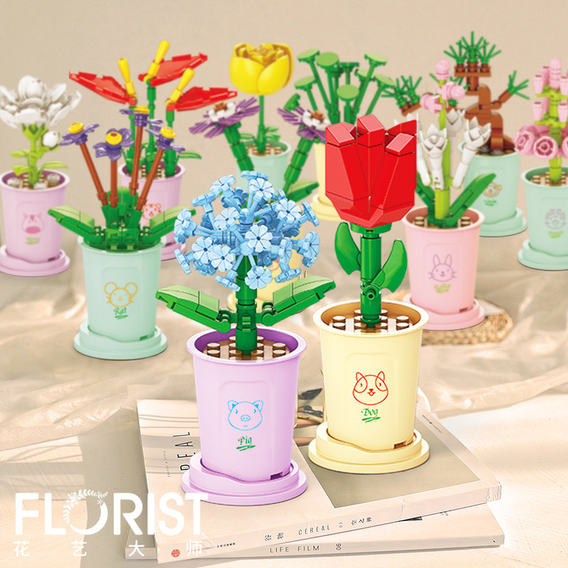 레고 사이버 연예인과 호환 12 별자리 행운의 꽃 빌딩 블록 사무실 장식품 어린이 퍼즐 빌딩 블록 장난감 선물스토어 가기