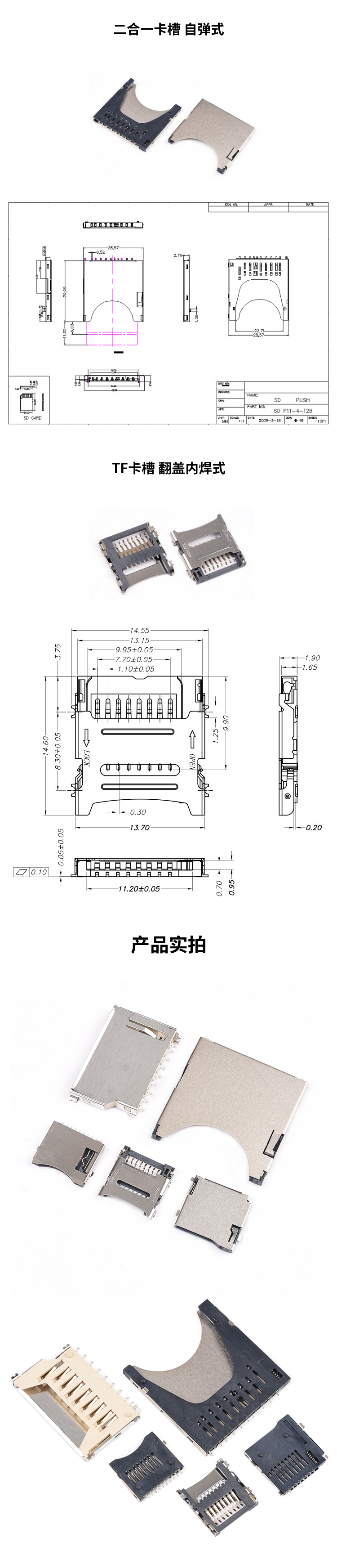 • 짧은 본체 SD 카드 홀더 2-in-1