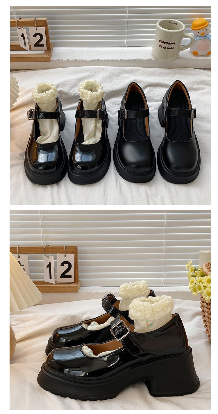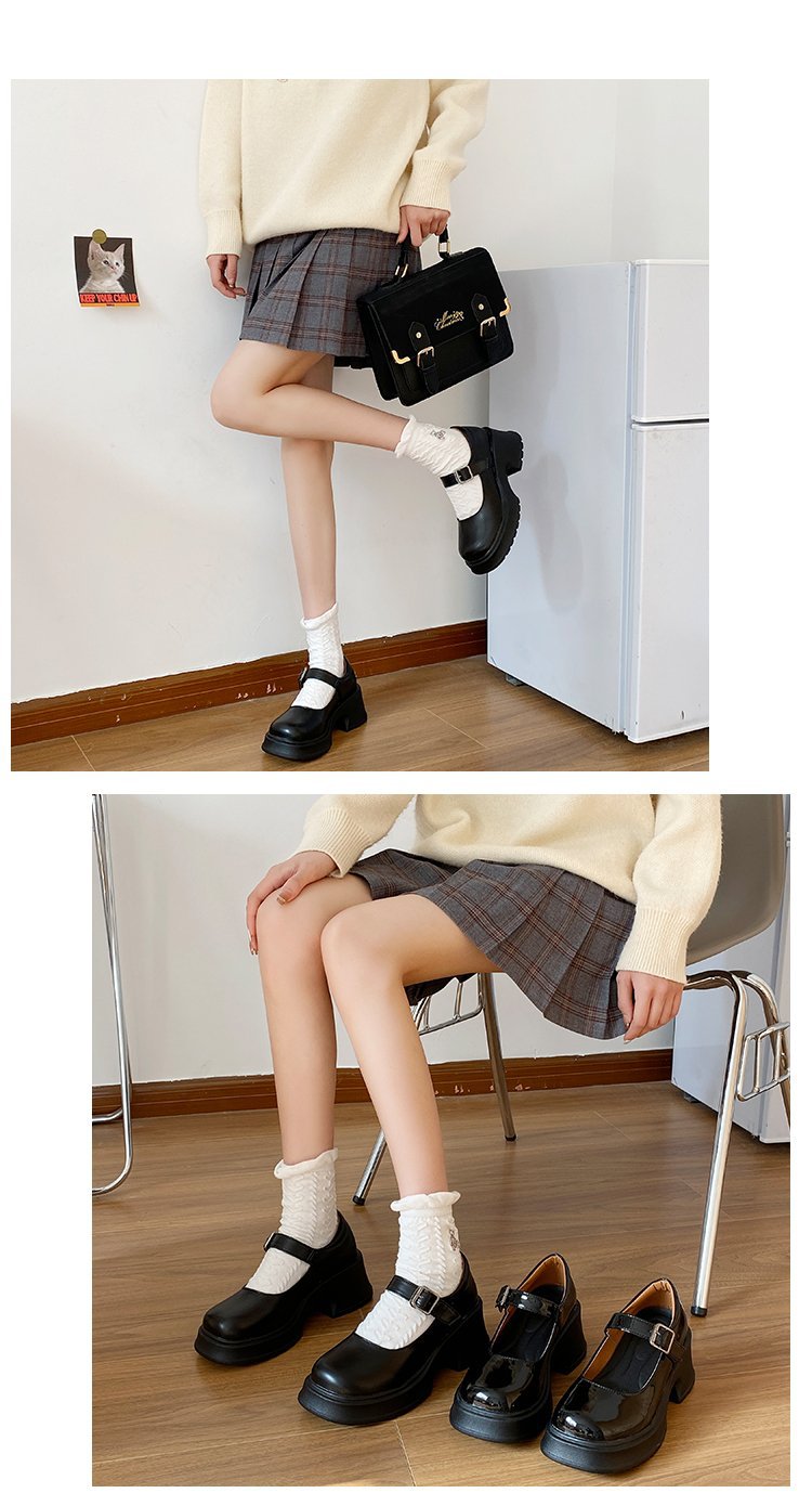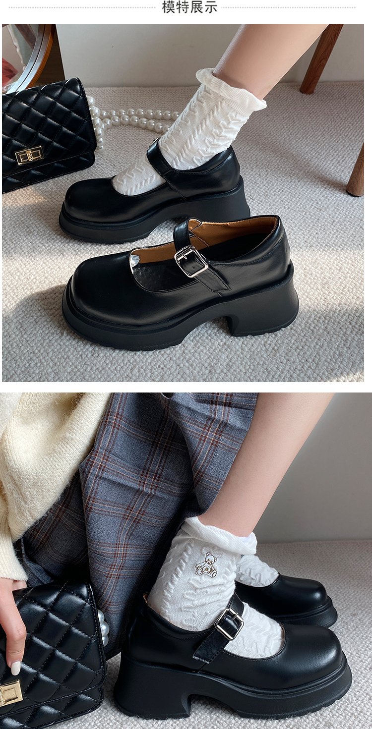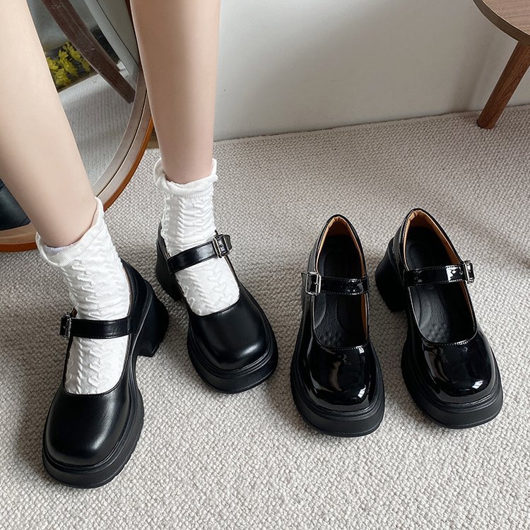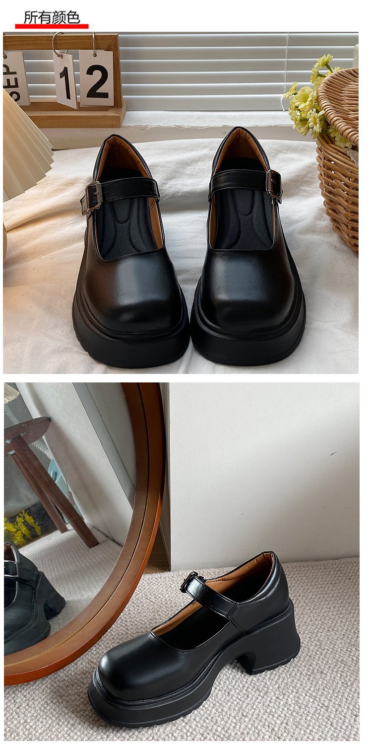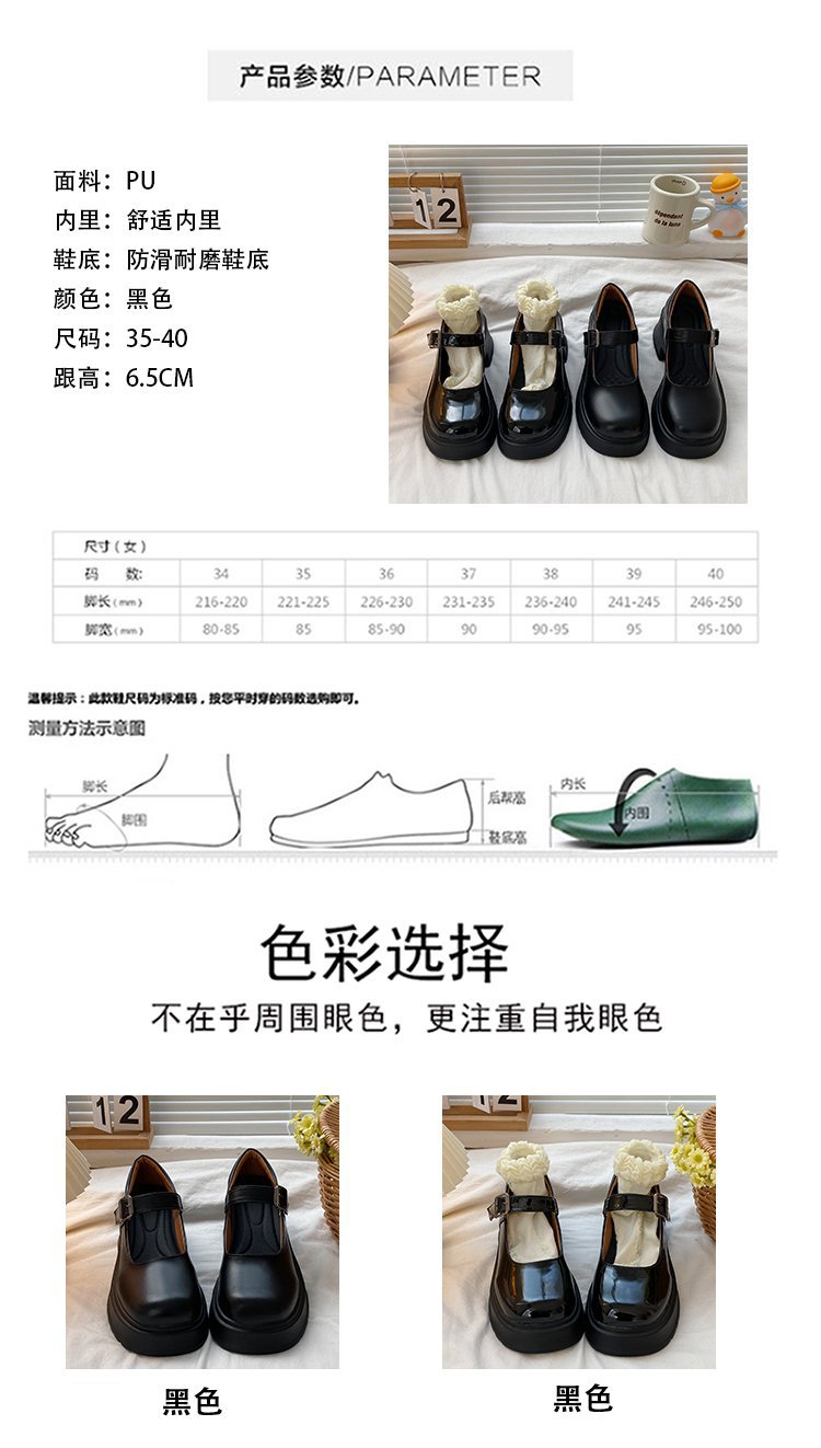 블랙 일본식 두꺼운 굽 두꺼운 밑창 영국 가죽 신발 여성용 2023 봄 새로운 복고풍 jk 높이 증가 메리 제인 신발스토어 가기