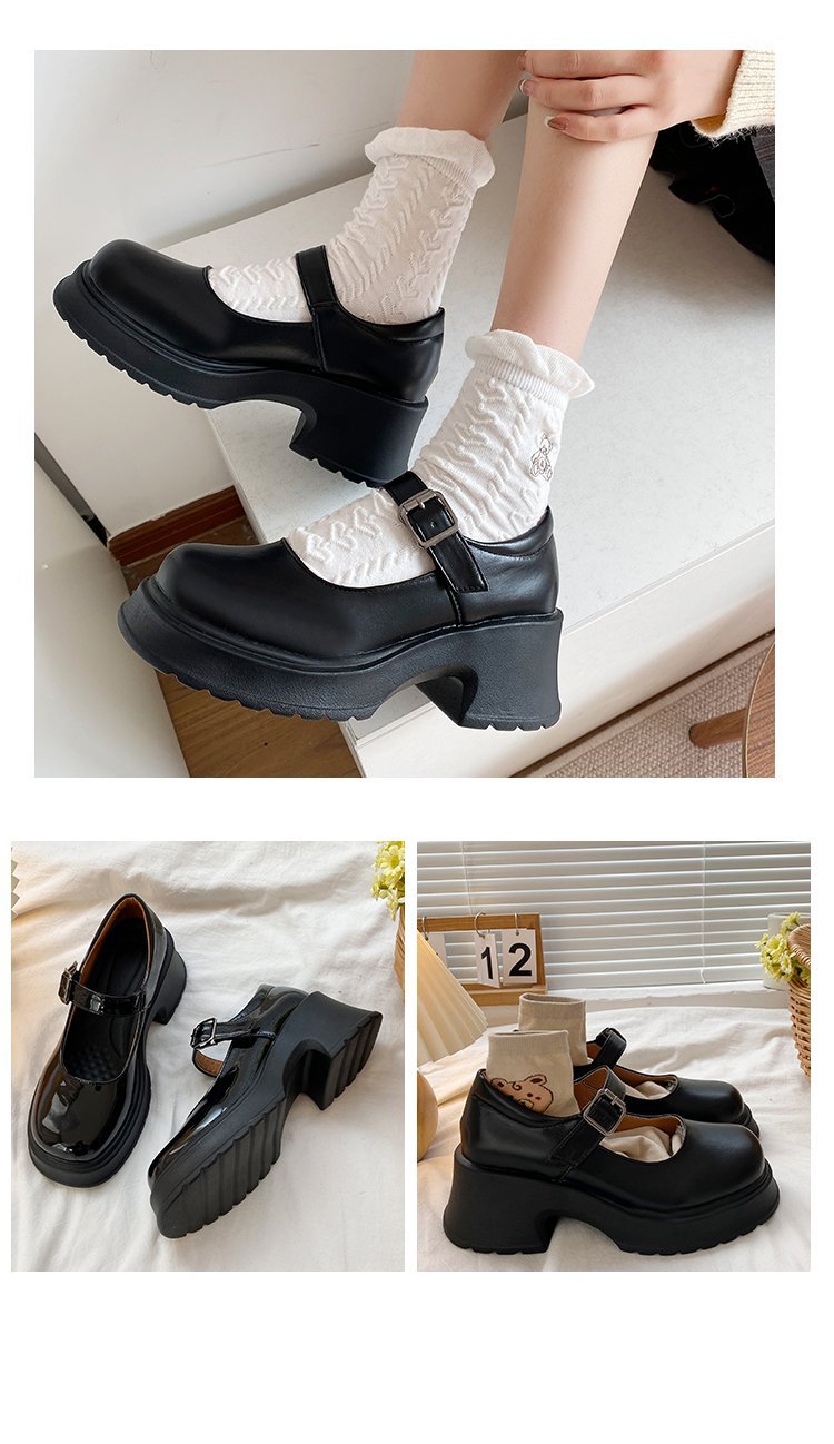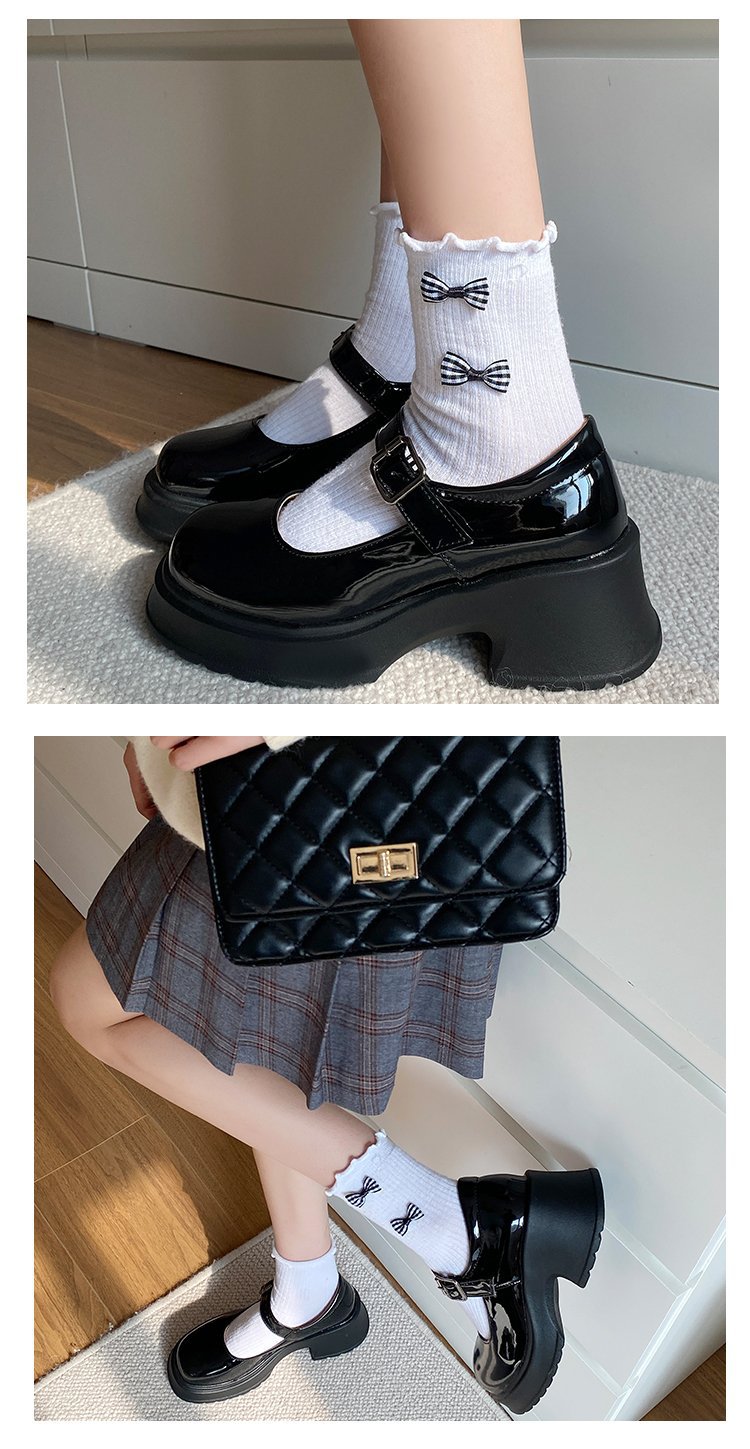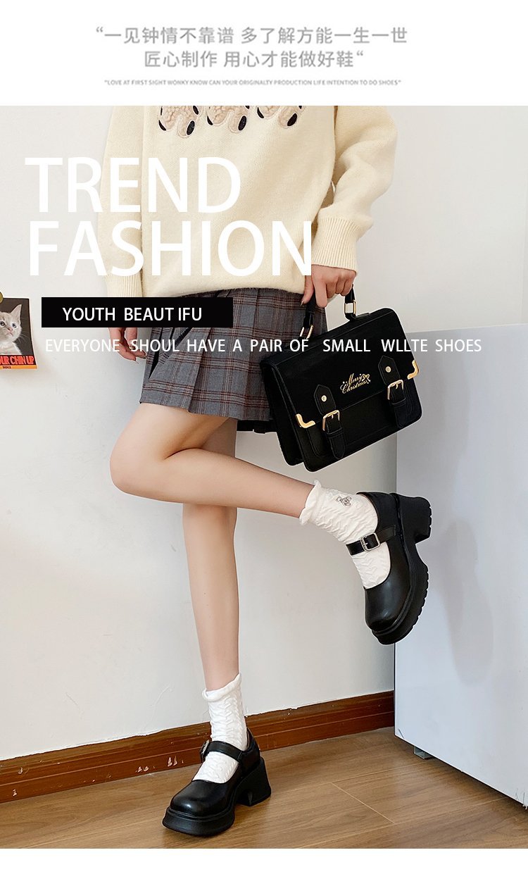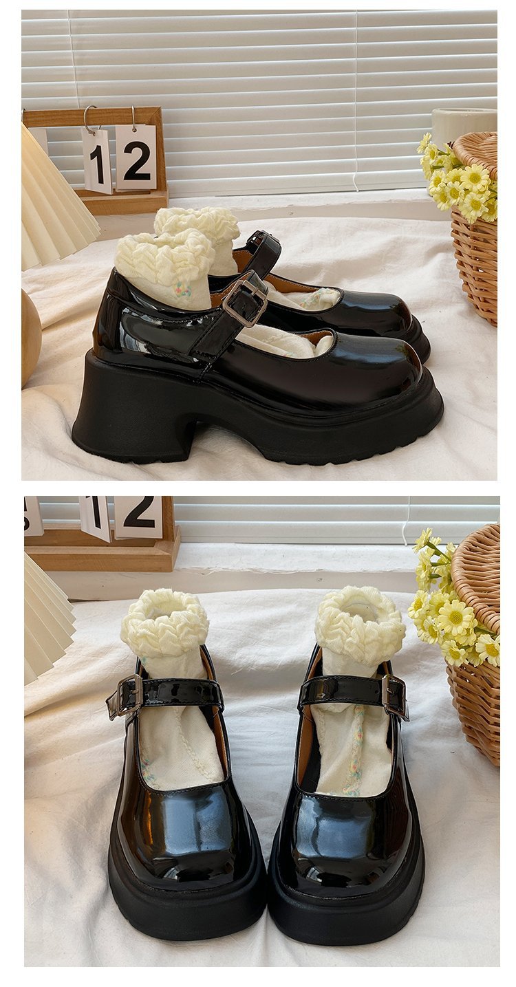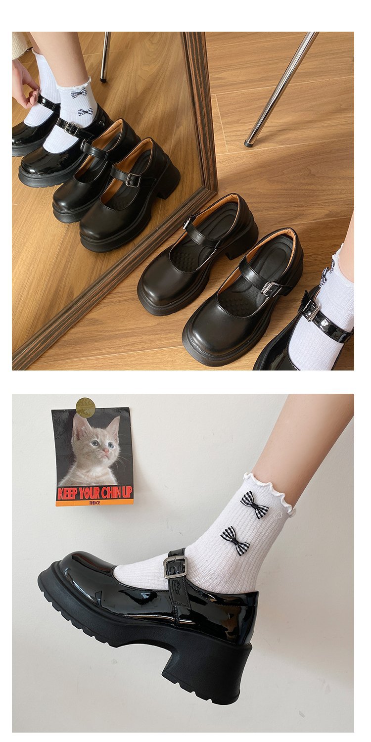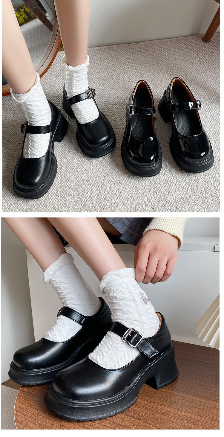 블랙 일본식 두꺼운 굽 두꺼운 밑창 영국 가죽 신발 여성용 2023 봄 새로운 복고풍 jk 높이 증가 메리 제인 신발스토어 가기