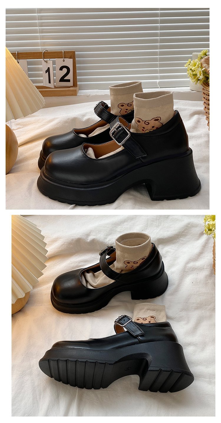 블랙 일본식 두꺼운 굽 두꺼운 밑창 영국 가죽 신발 여성용 2023 봄 새로운 복고풍 jk 높이 증가 메리 제인 신발