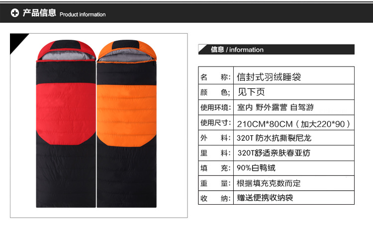 도매 다운 침낭, 경량 야외 성인용 초경량 오리털 침낭, 방한 및 방수 봉투형 방진 침낭스토어 가기