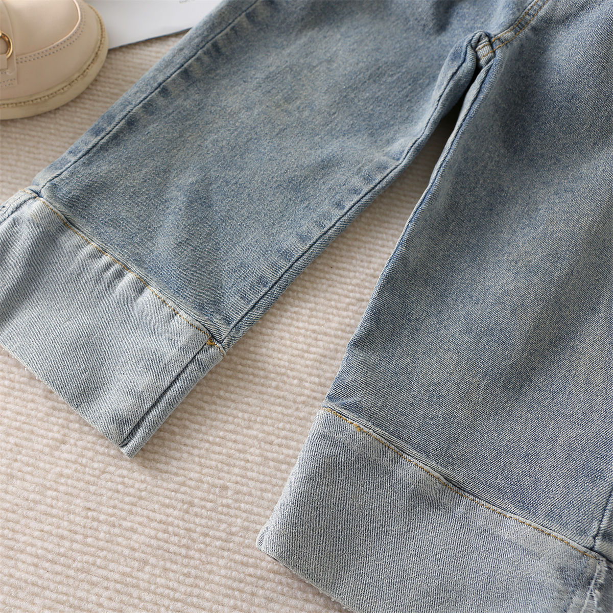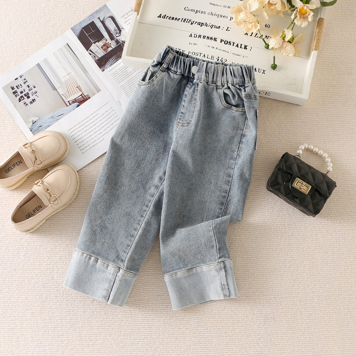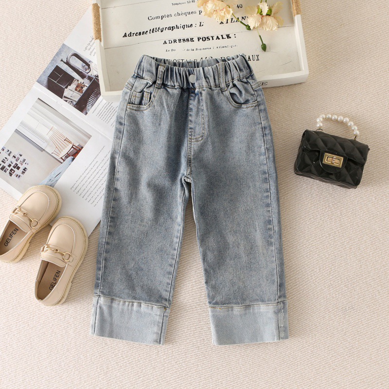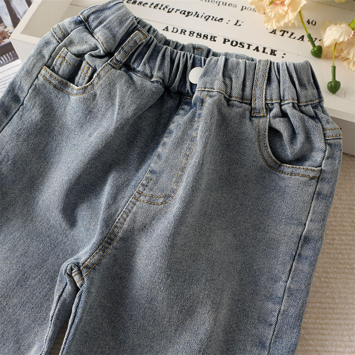 6196 아동복 소녀 한국식 소형 스트레이트 청바지 아기 봄과 가을 새 어린이 캐주얼 긴 바지 유행