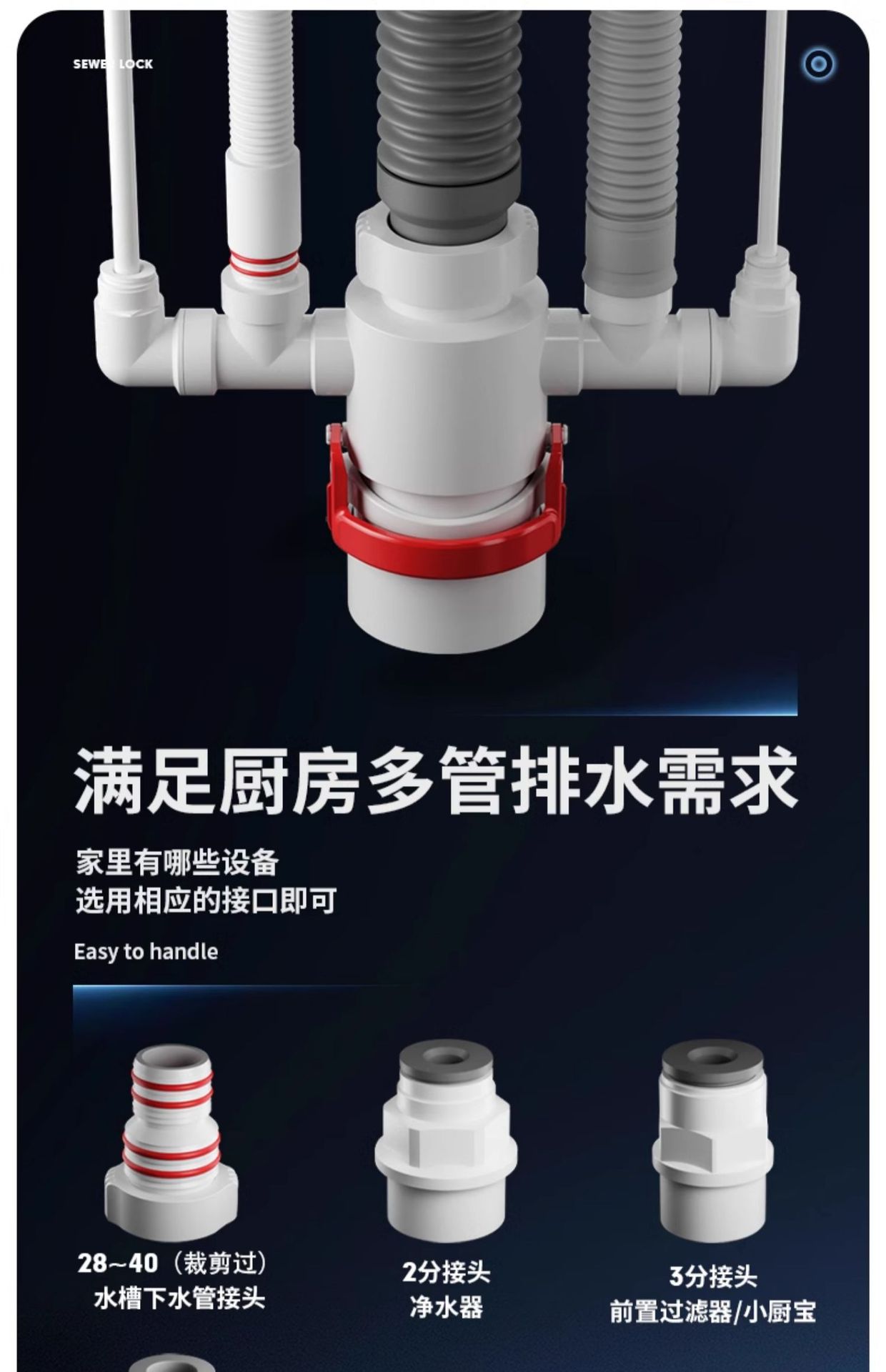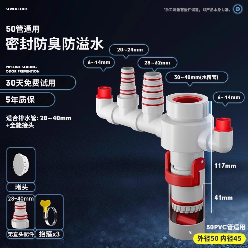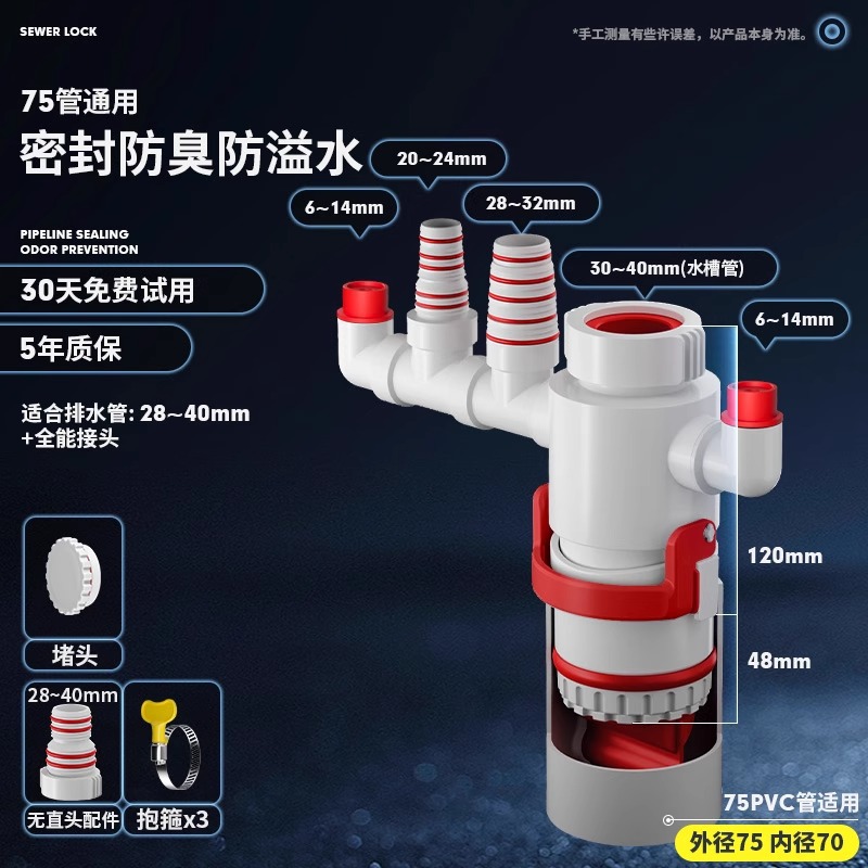 냄새 방지 씰 링 75 주방 하수구 삼방향 커넥터 야채 세면대 세탁기 냄새 방지 유물