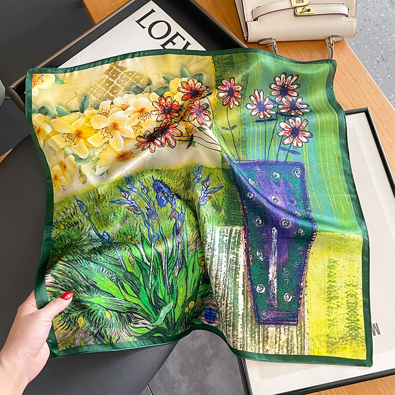 2023 실크 스카프 여성 패션 뽕나무 실크 장식 스카프 한국식 실크 유화 장식 스카프 기질 작은 사각 스카프