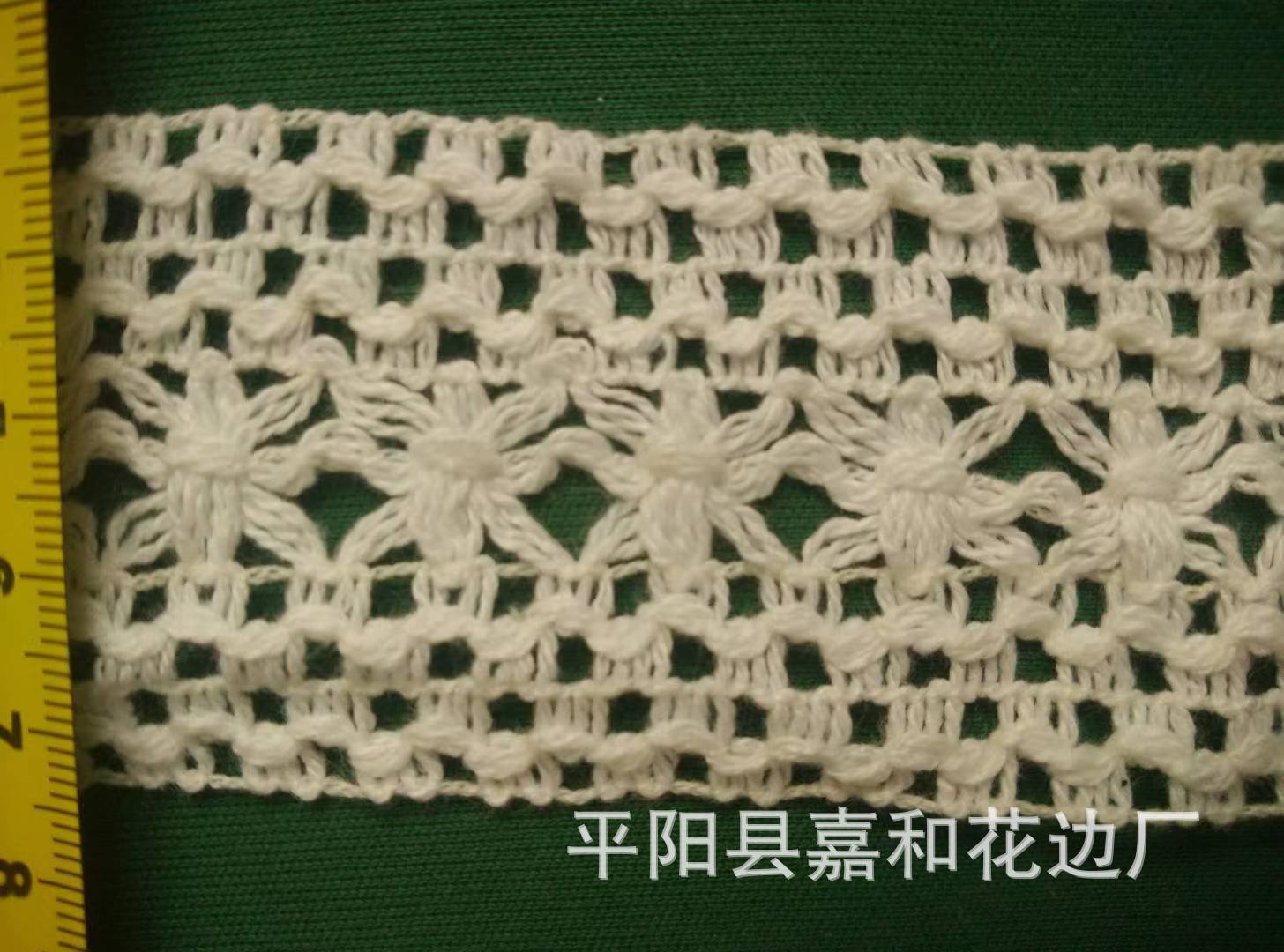 공장 공급 코튼 뜨개질 레이스 어린이 의류 액세서리 후크 레이스 중공 자수 자카드 의류 액세서리