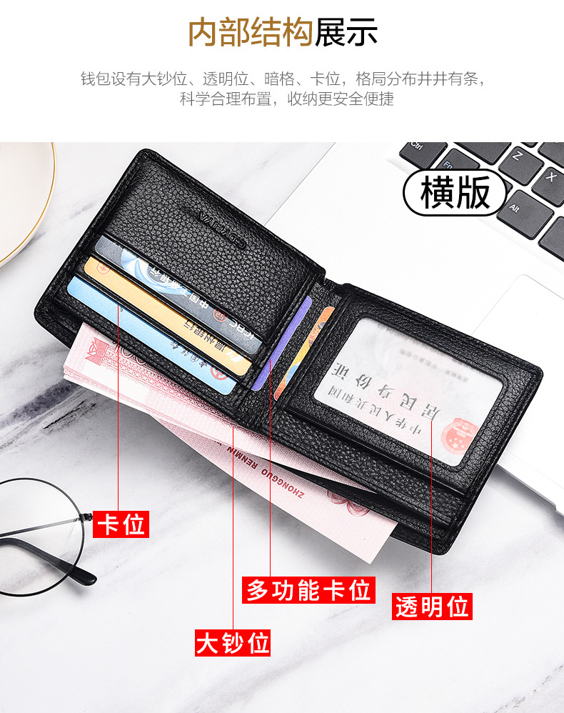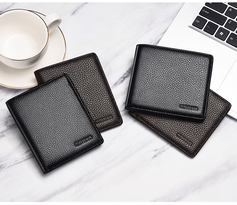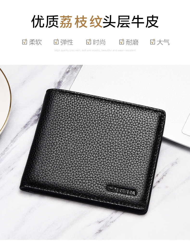 정품 가죽 지갑 남자 짧은 스타일 2025 새로운 얇은 동전 지갑 카드 가방 간단한 첫 번째 레이어 소 가죽 지갑 도매스토어 가기