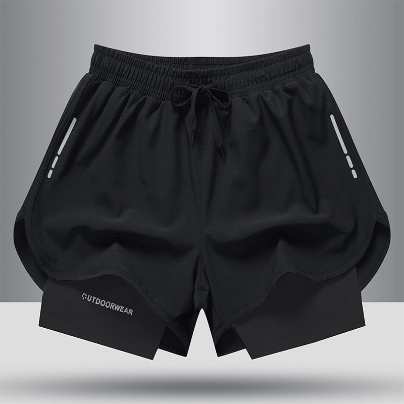 남자 수영 트렁크 패션 가짜 두 조각 살 커버 당황 방지 코너 바지 스포츠 피트니스 달리기 요가 남성용 수영 트렁크