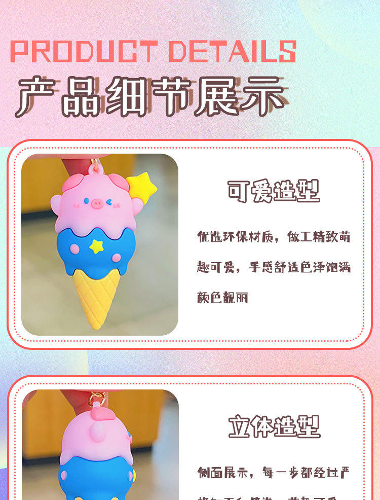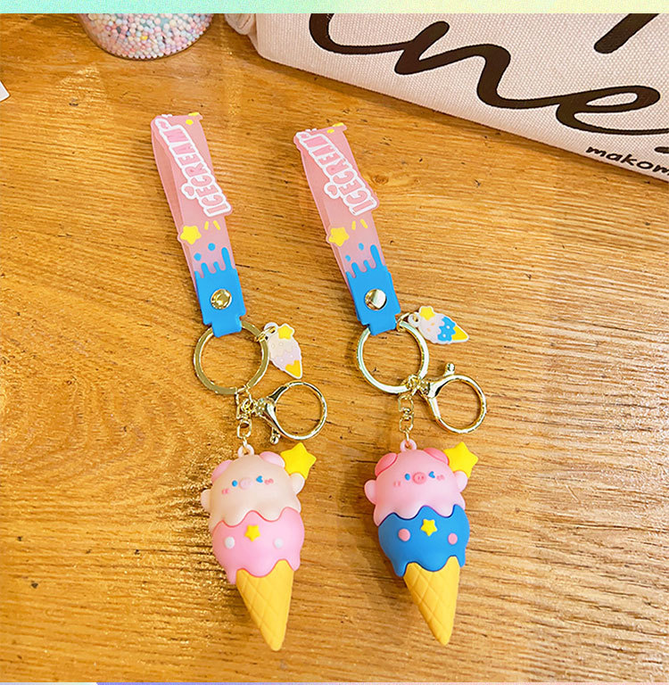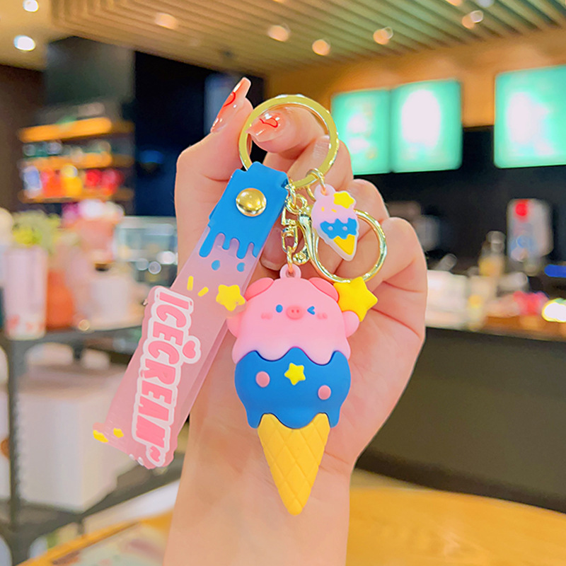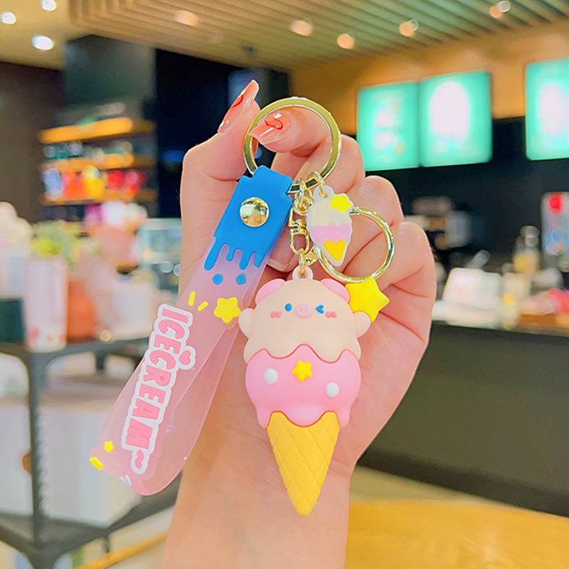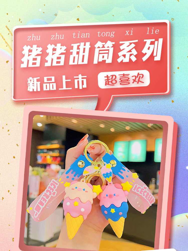 돼지 달콤한 콘 창조적 인 책가방 펜던트 키 체인 만화 돼지 인형 펜던트 커플 열쇠 고리 선물 도매