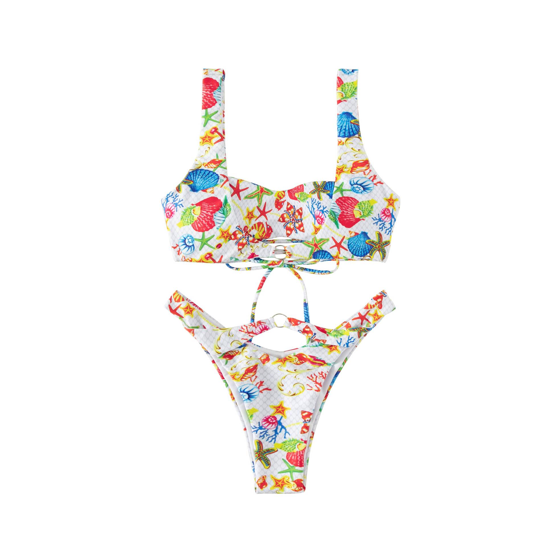 기적의 유럽과 미국 새로운 하이 퀄리티 꽃 무늬 비키니 꽉 등이없는 스플릿 섹시 멜빵 해외 무역 수영복 3029