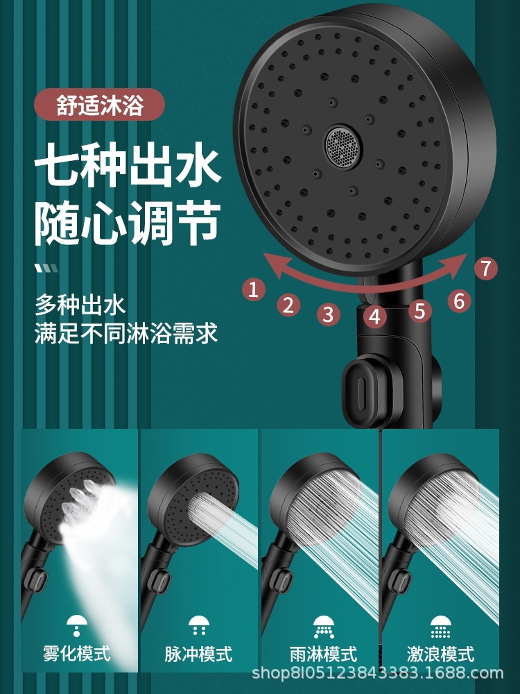 • [블랙 세트 1] 7 단 터보 차저 샤워 1.5 미터 호스