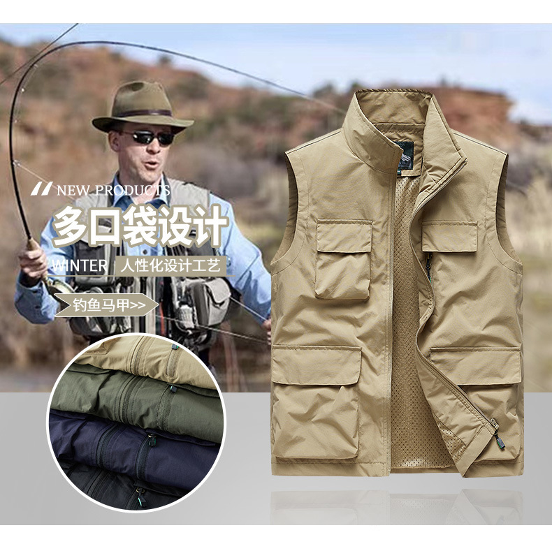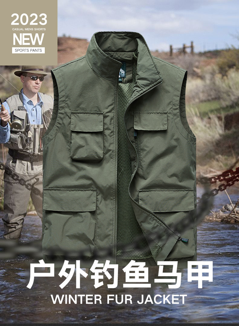 2023新款春夏季新款男士商务休闲钓鱼马甲中年男士工装背心大码