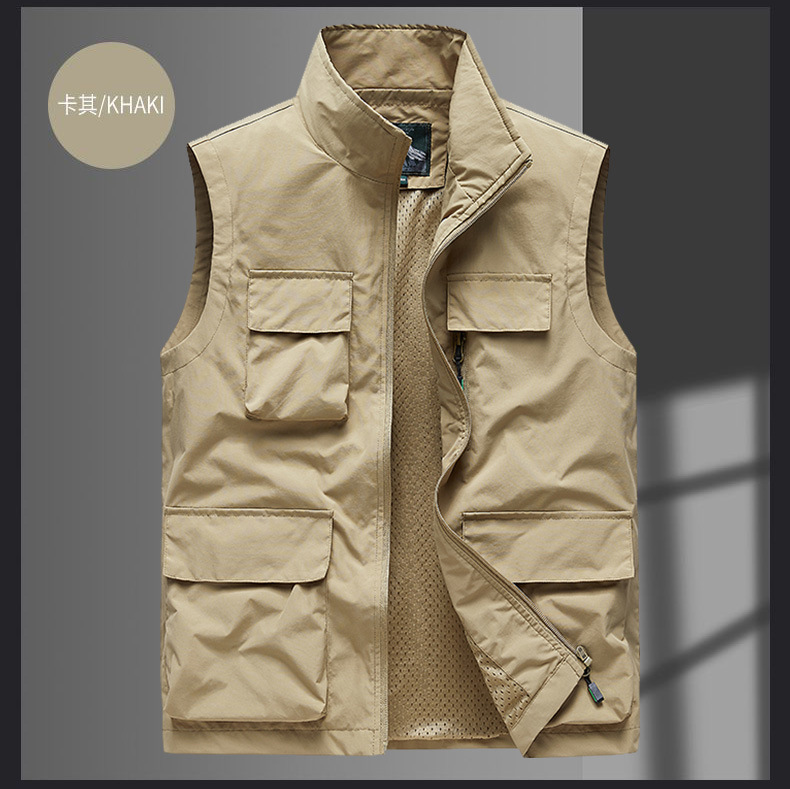 2023 새로운 봄과 여름 새로운 남자의 비즈니스 캐주얼 낚시 조끼 중년 남자의 작업복 조끼 플러스 사이즈