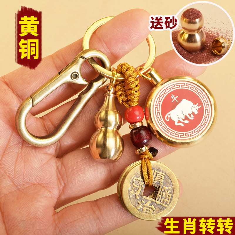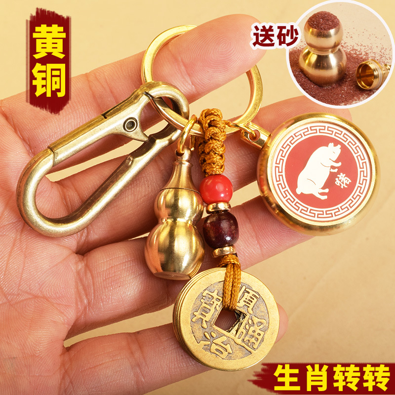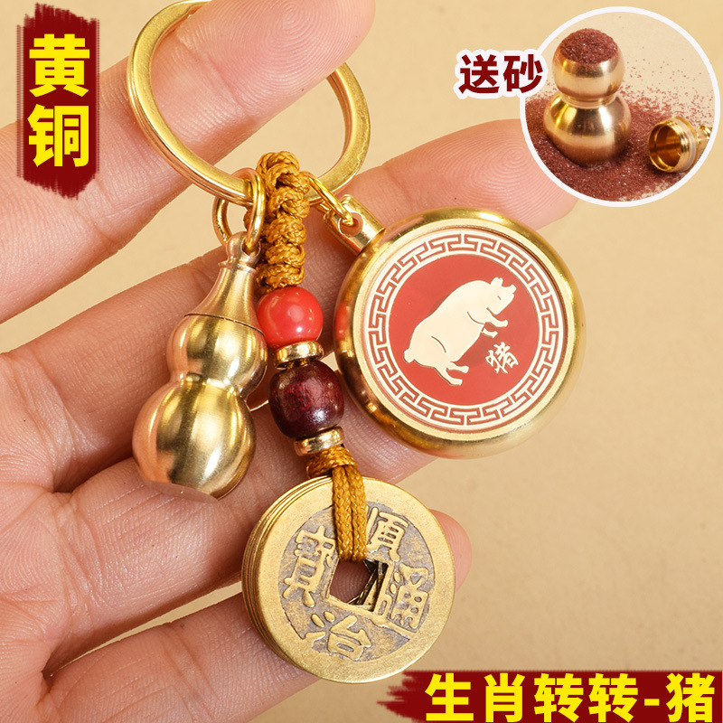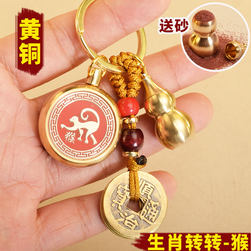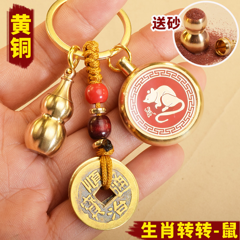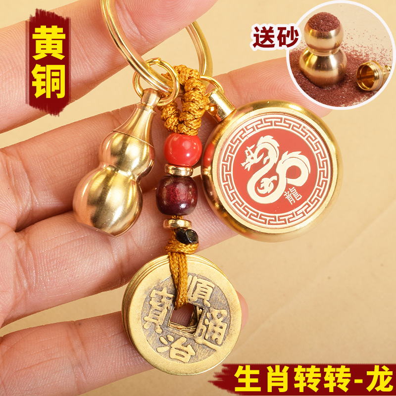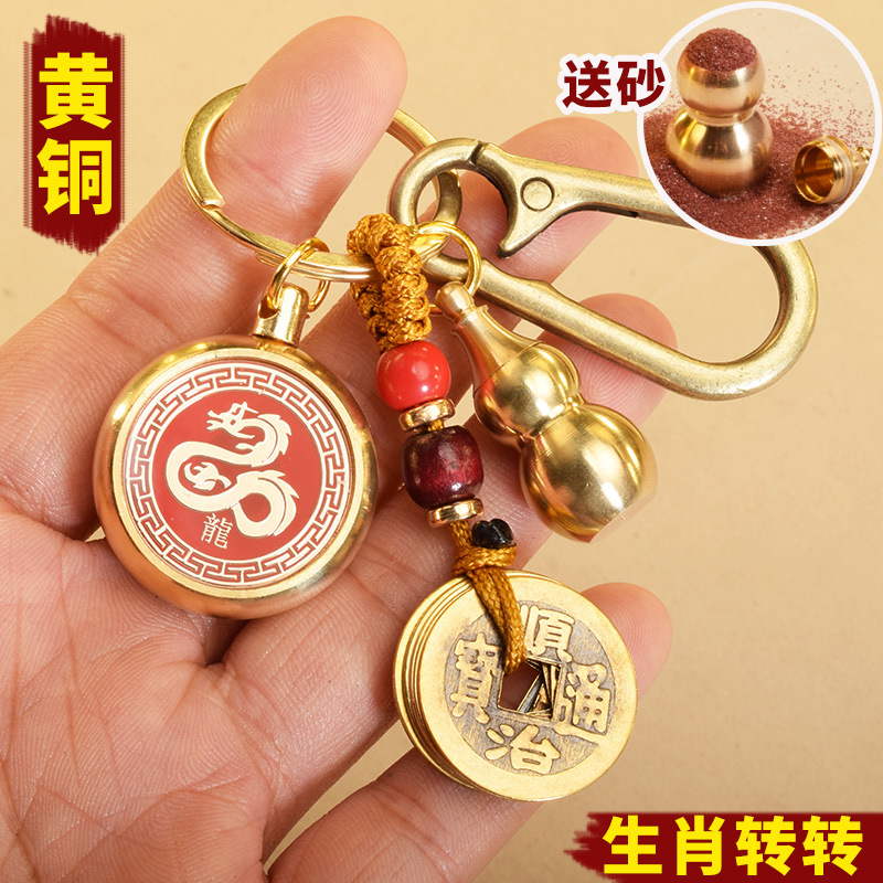 황동 다섯 황제 돈 열쇠 고리 12 조디악 회전 펜던트 실제 구리 경치 지역 사원 박람회 노점 실행 장후 상품스토어 가기