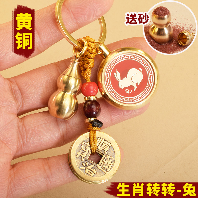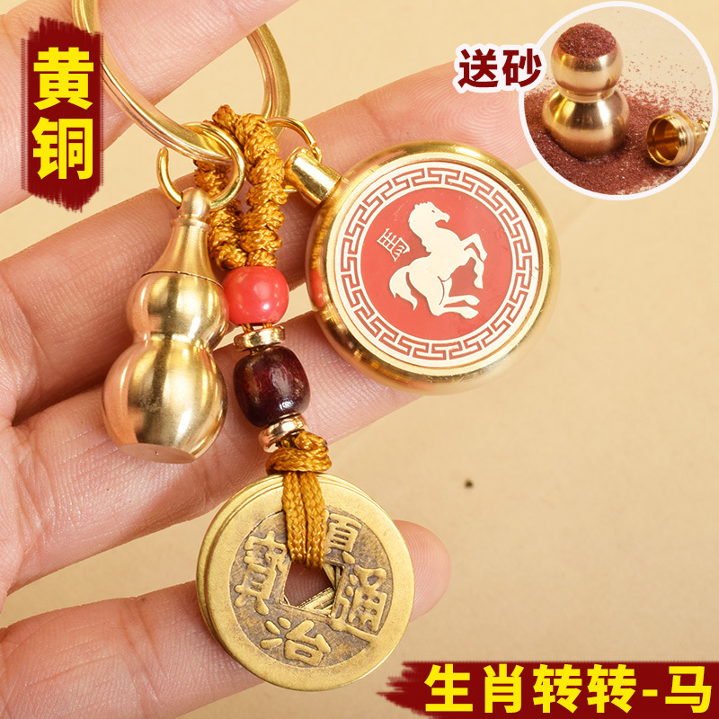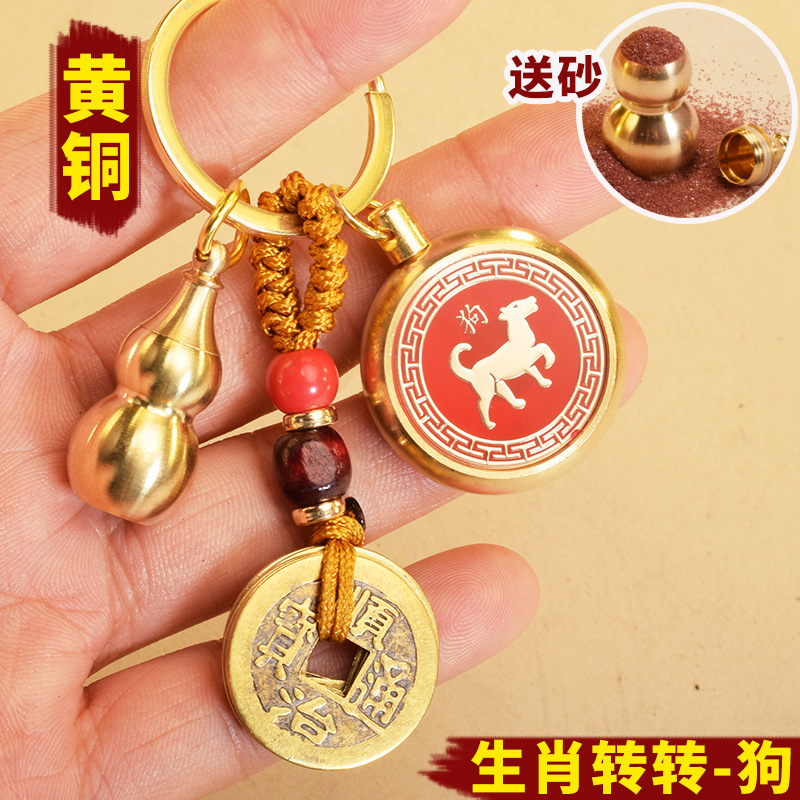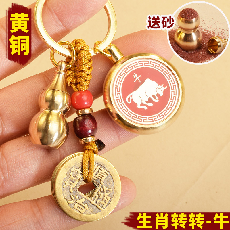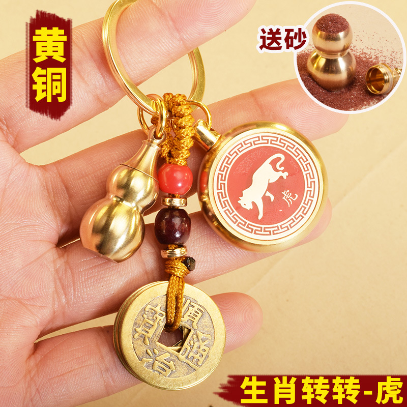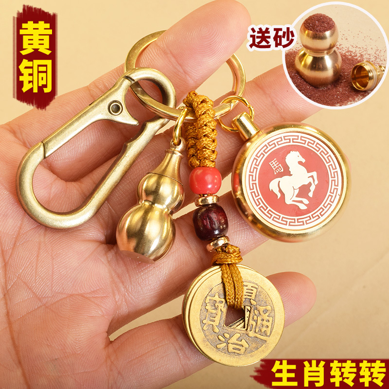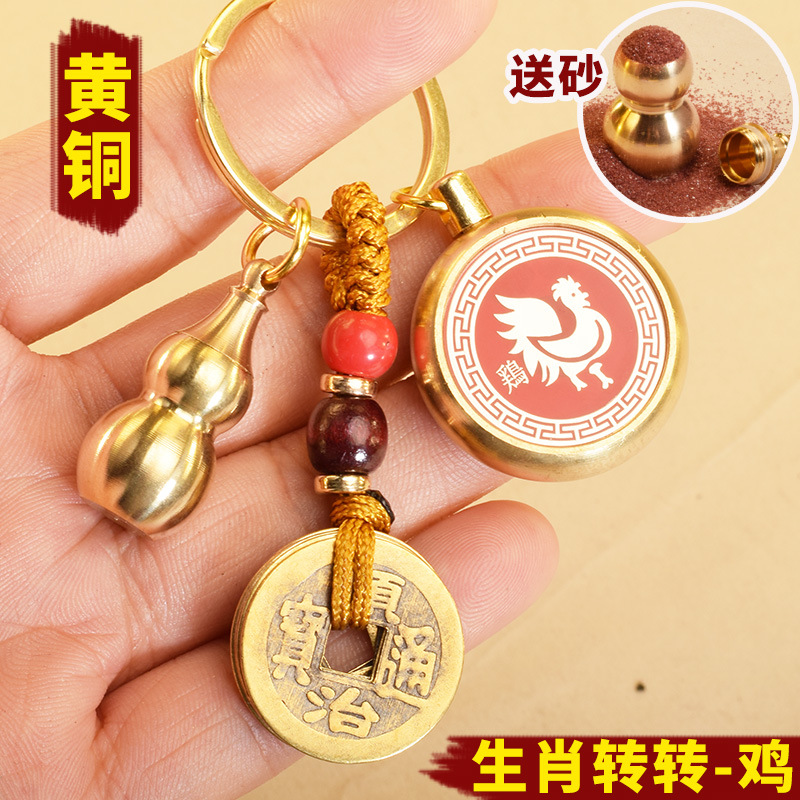 황동 다섯 황제 돈 열쇠 고리 12 조디악 회전 펜던트 실제 구리 경치 지역 사원 박람회 노점 실행 장후 상품스토어 가기