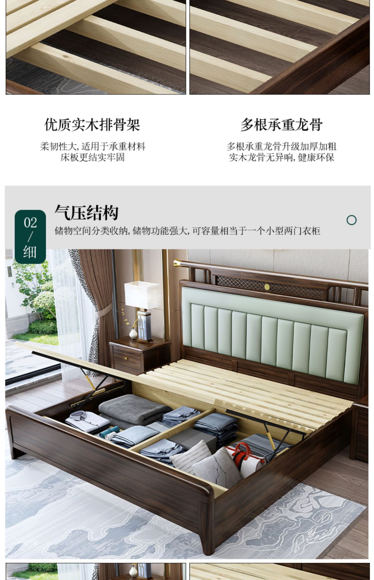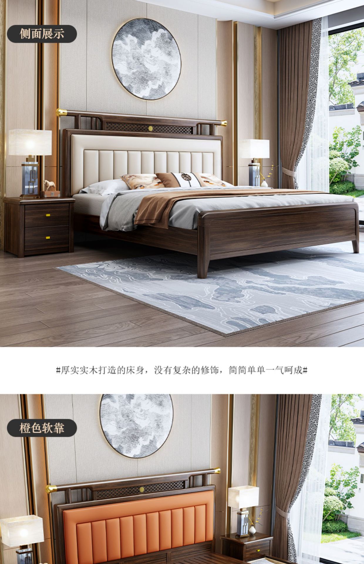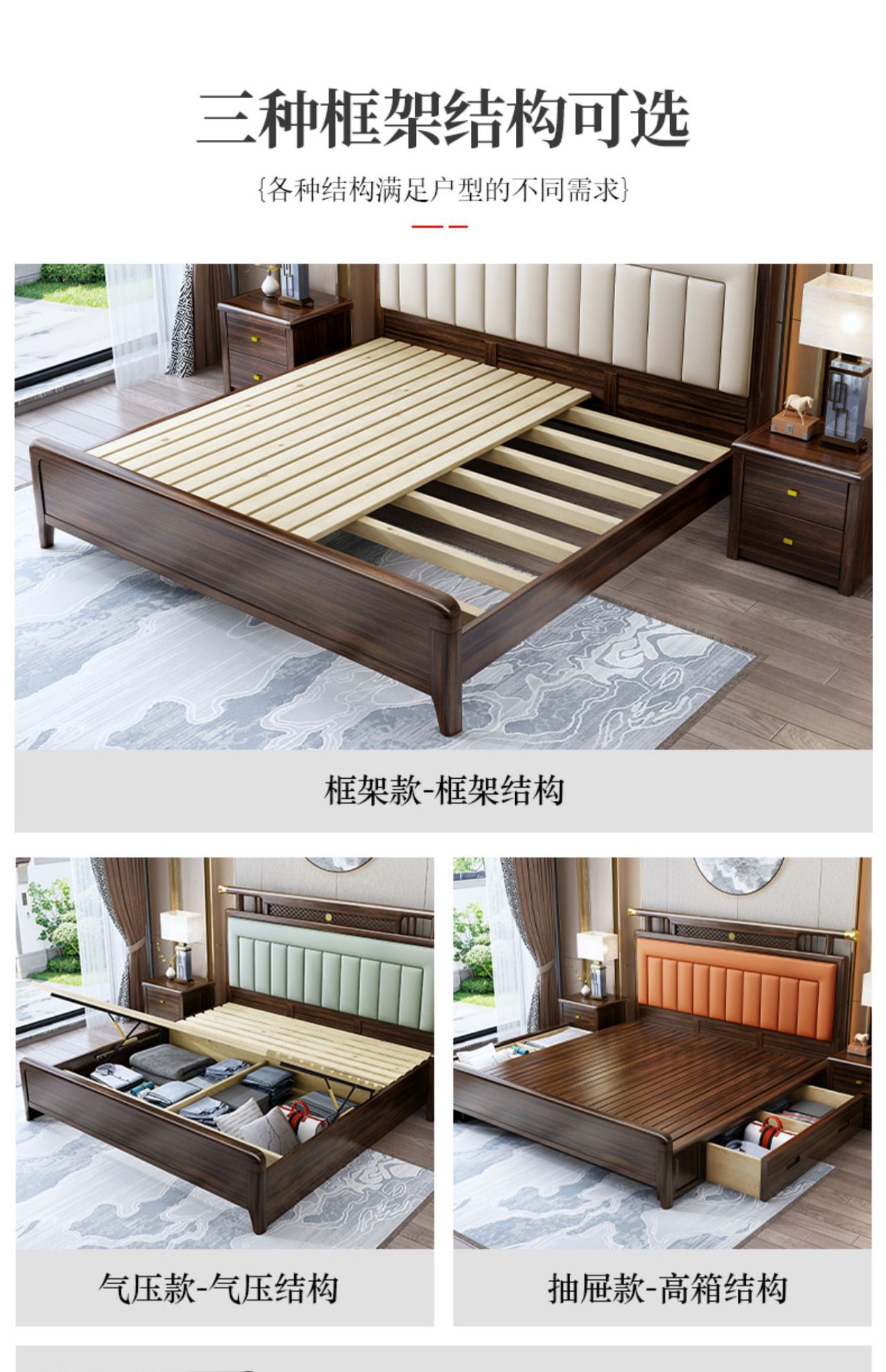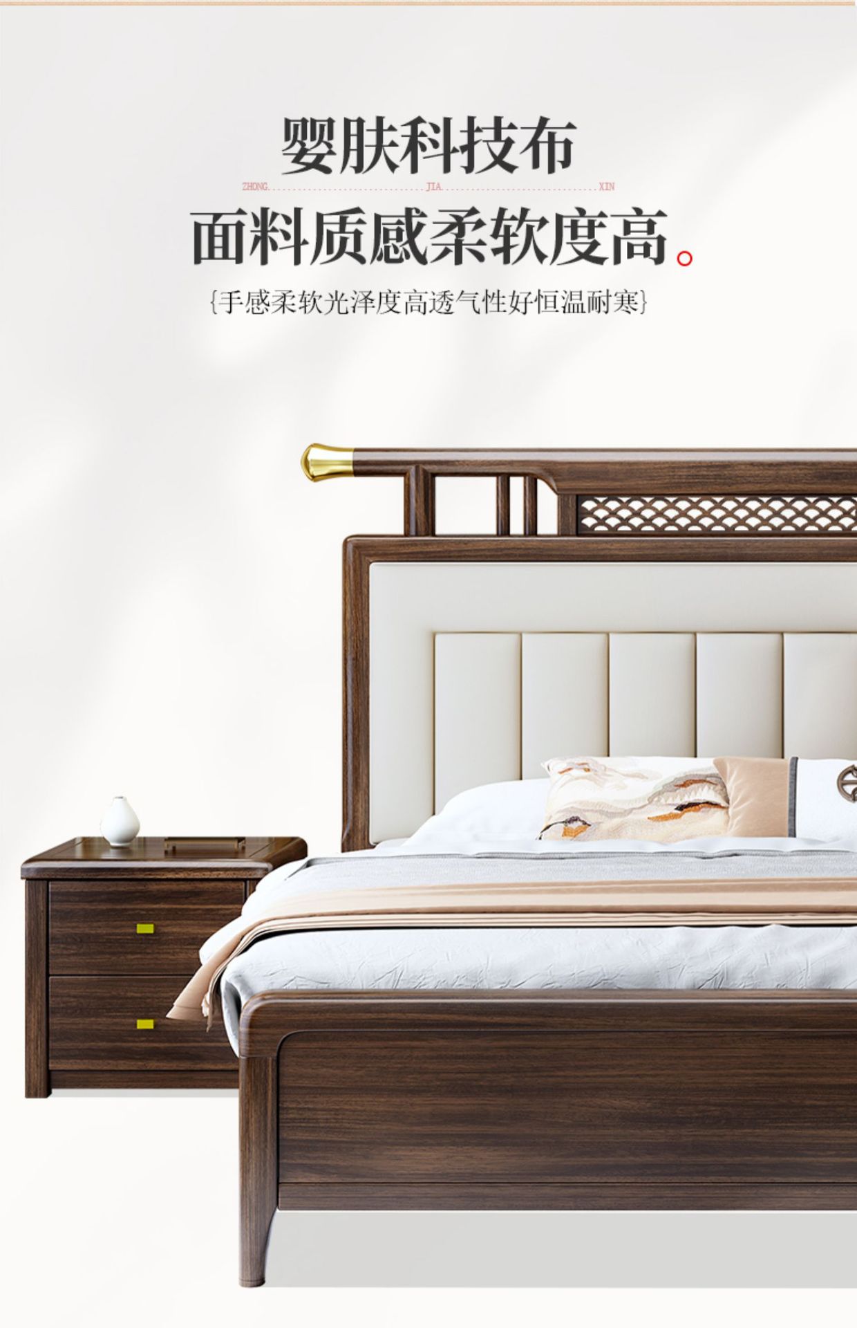 새로운 중국 소프트 백 단단한 나무 침대 흑단 더블 침대 1.8 m 1.5 현대 간단한 마스터 침실 큰 침대 수납 웨딩 침대스토어 가기