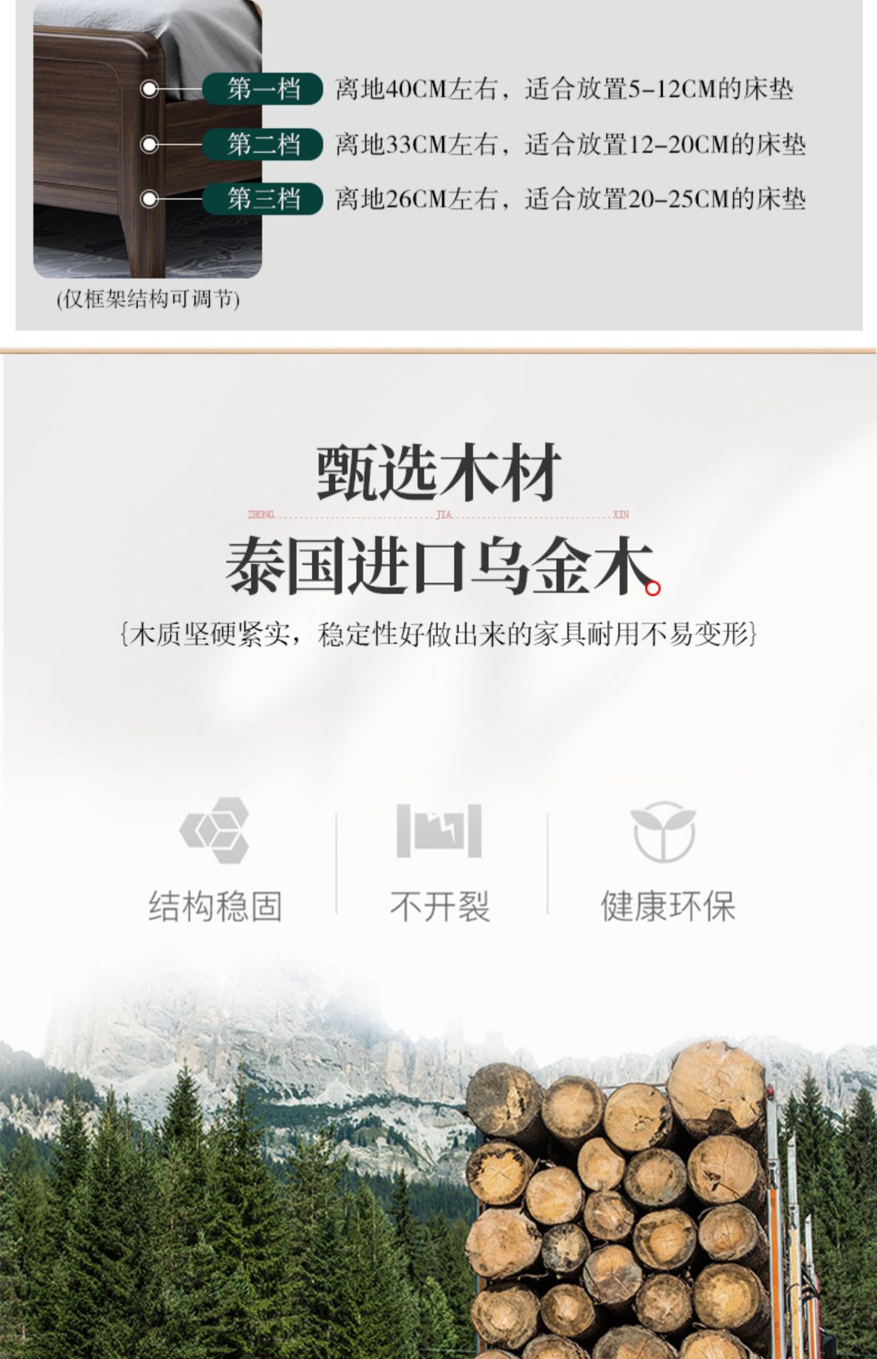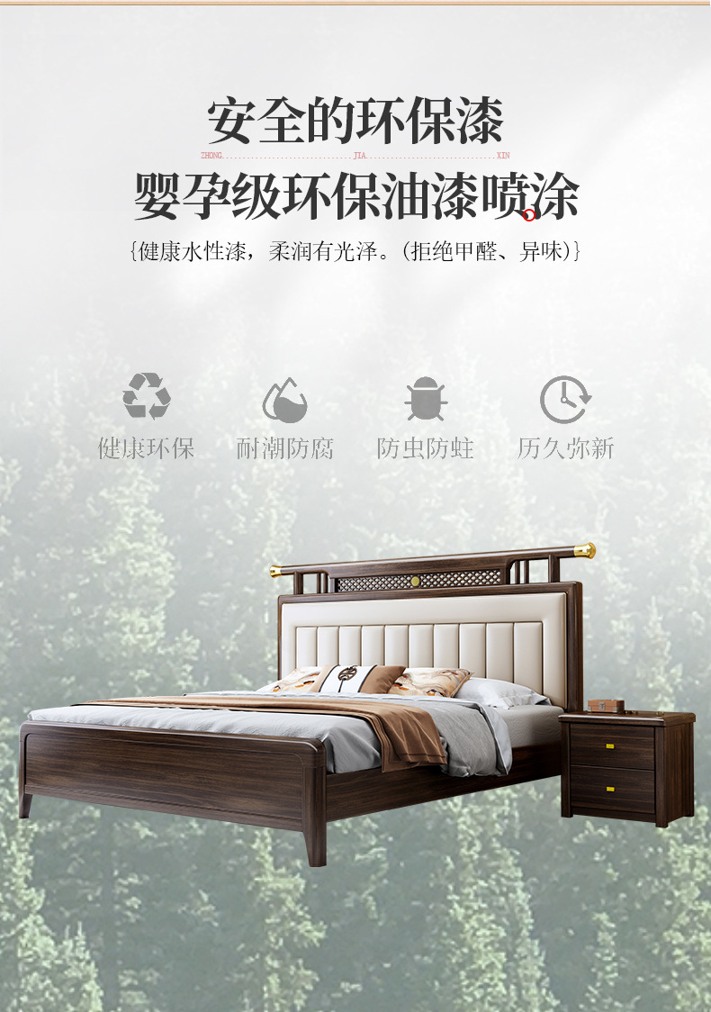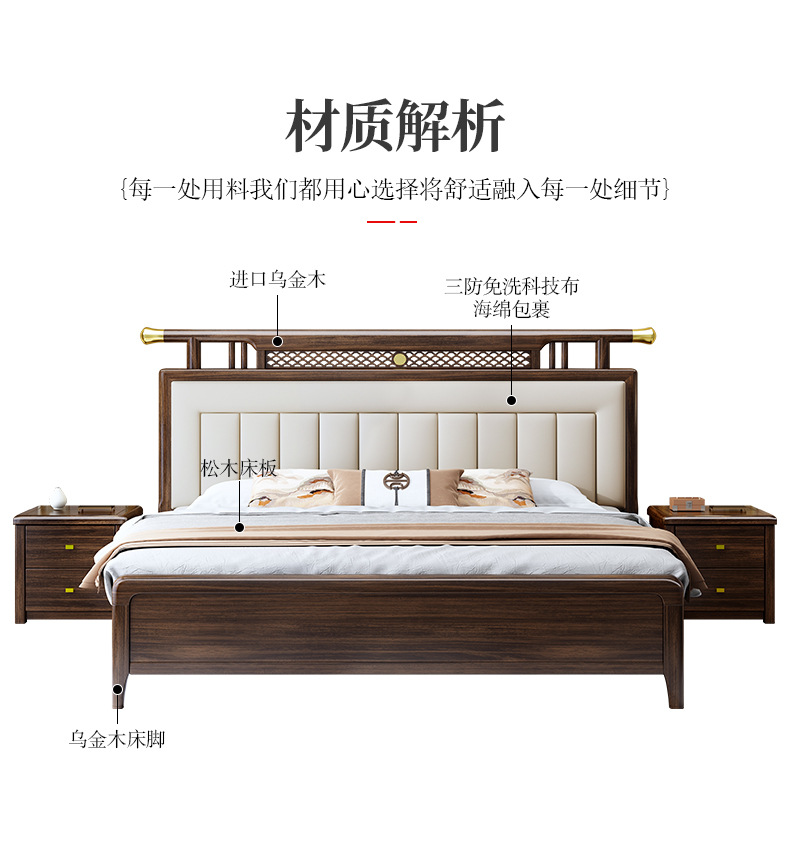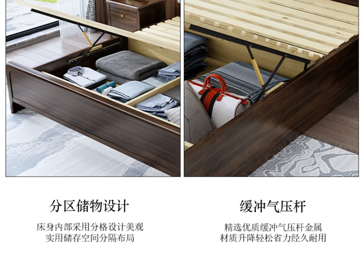 새로운 중국 소프트 백 단단한 나무 침대 흑단 더블 침대 1.8 m 1.5 현대 간단한 마스터 침실 큰 침대 수납 웨딩 침대스토어 가기