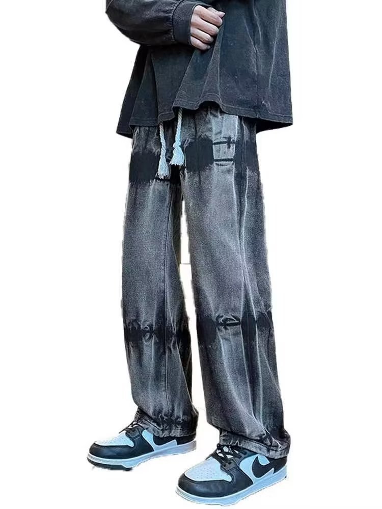 청바지 남성 봄 가을 새로운 유행 브랜드 루즈한 와이드 레그 팬츠 트렌디한 한국식 만능 작업복 캐주얼 팬츠