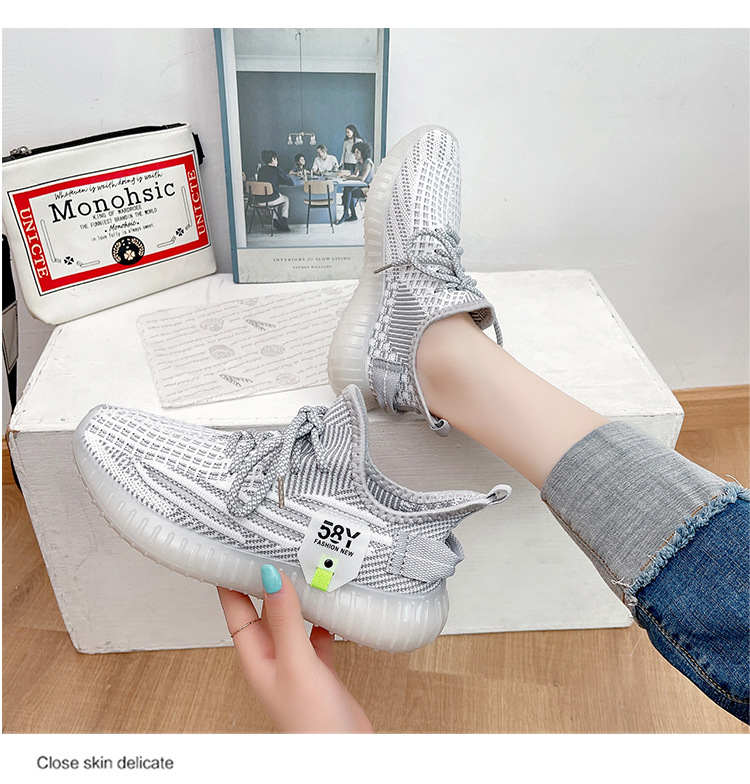 2024 신상 지구색 플라이 니트 코코넛 슈즈 통기성 플라이 니트 운동화 트렌디 학생용 다용도 캐주얼화 여성용