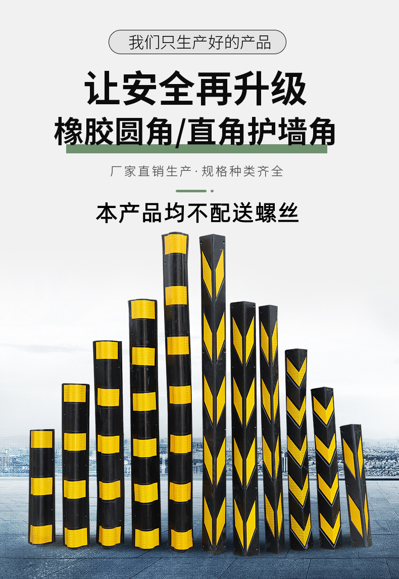 • 고무 코너 보호자 수직 마크 800mm * 100mm * 10mm * 하이 퀄리티 고무 * 검은 색과 노란색