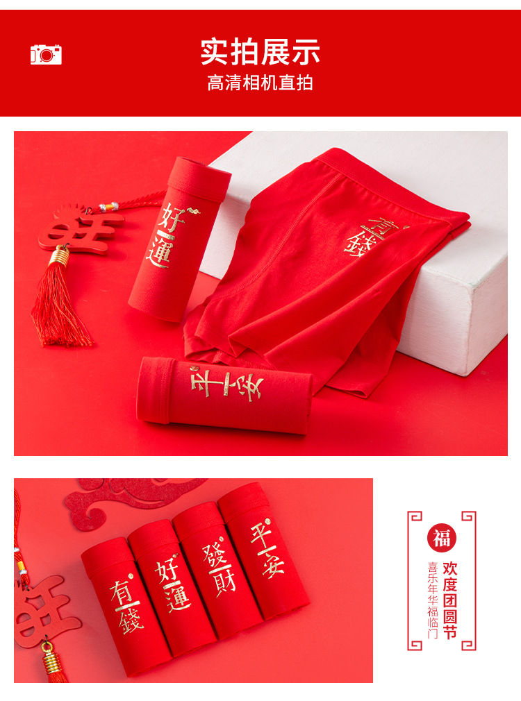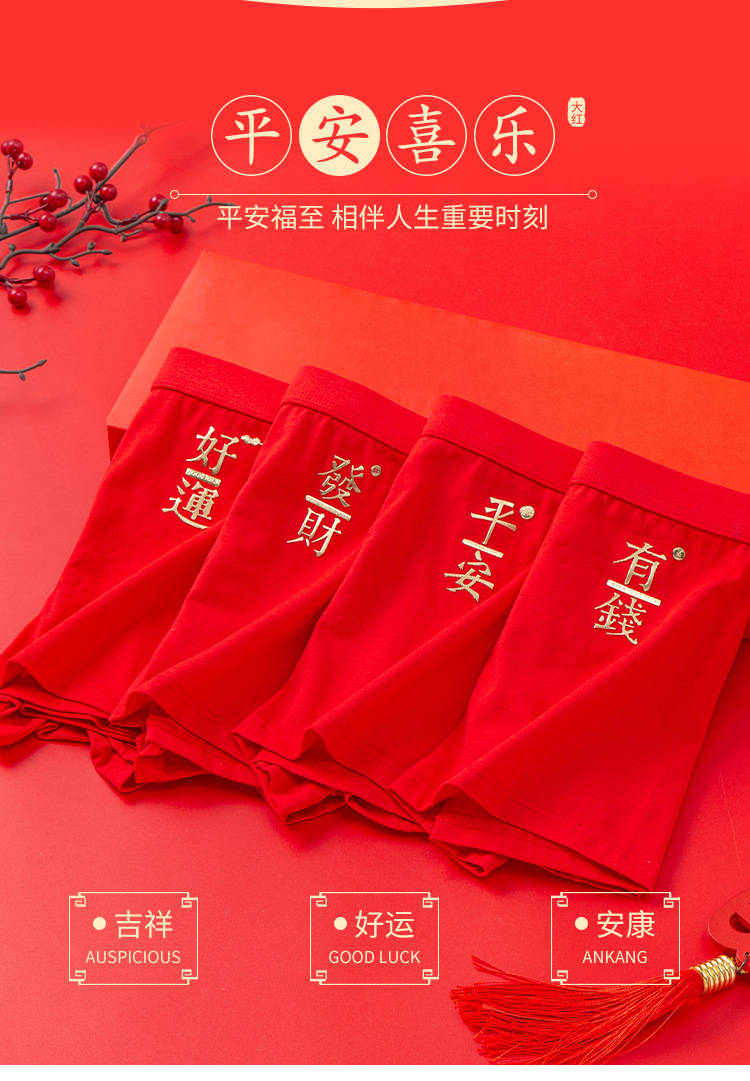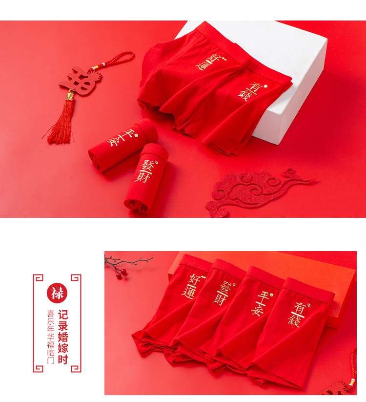 베밍니아 남자 속옷 소년 복서 면화 큰 빨간 결혼 선물 통기성 복서 반바지 도매