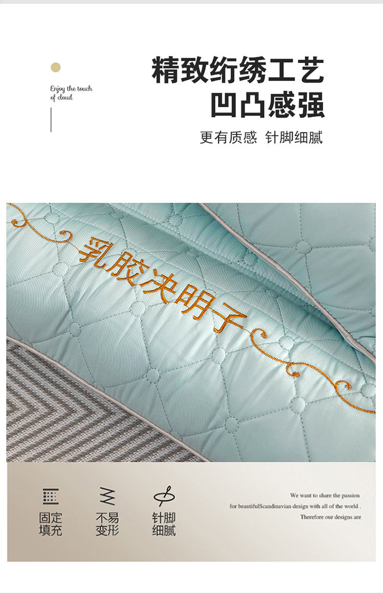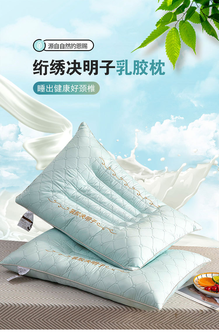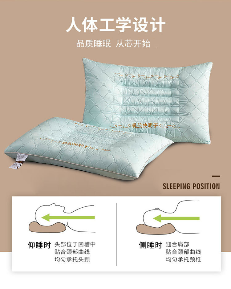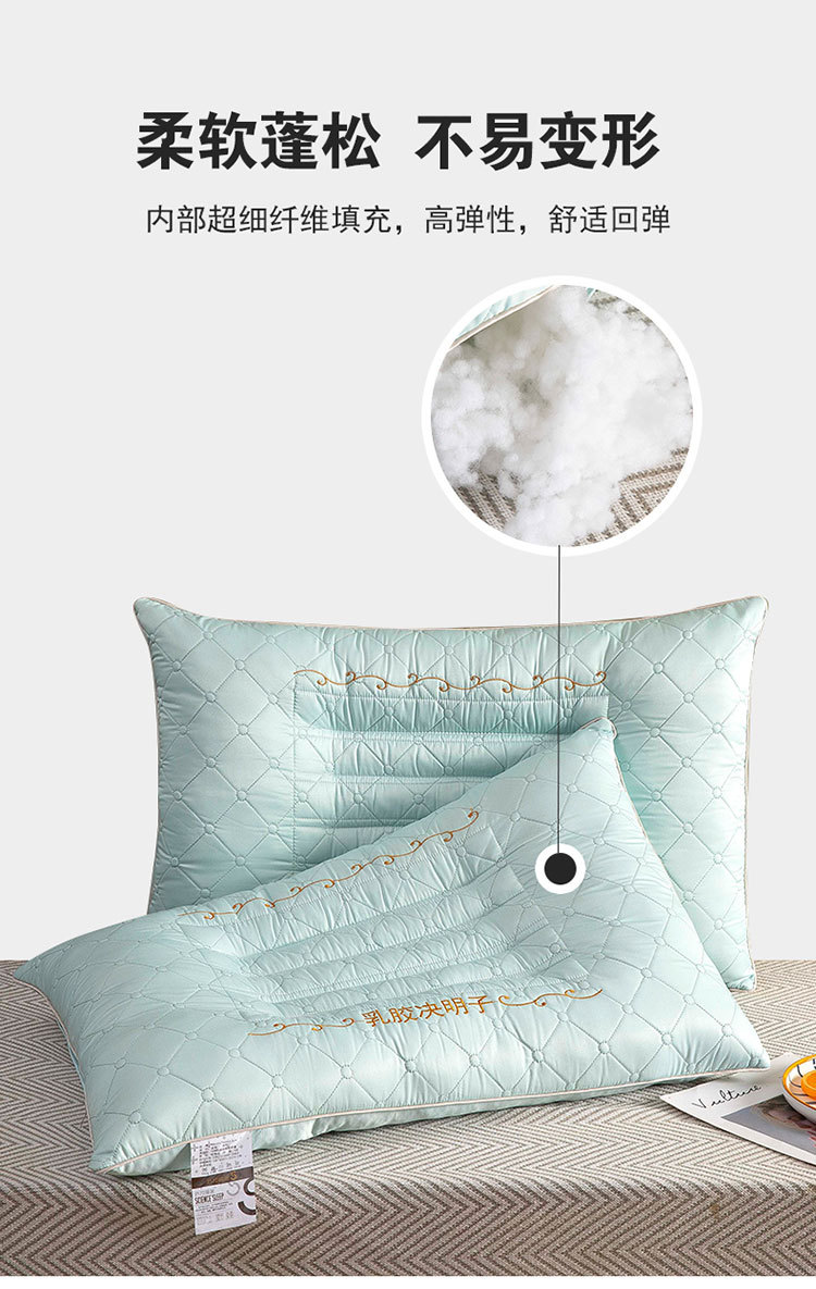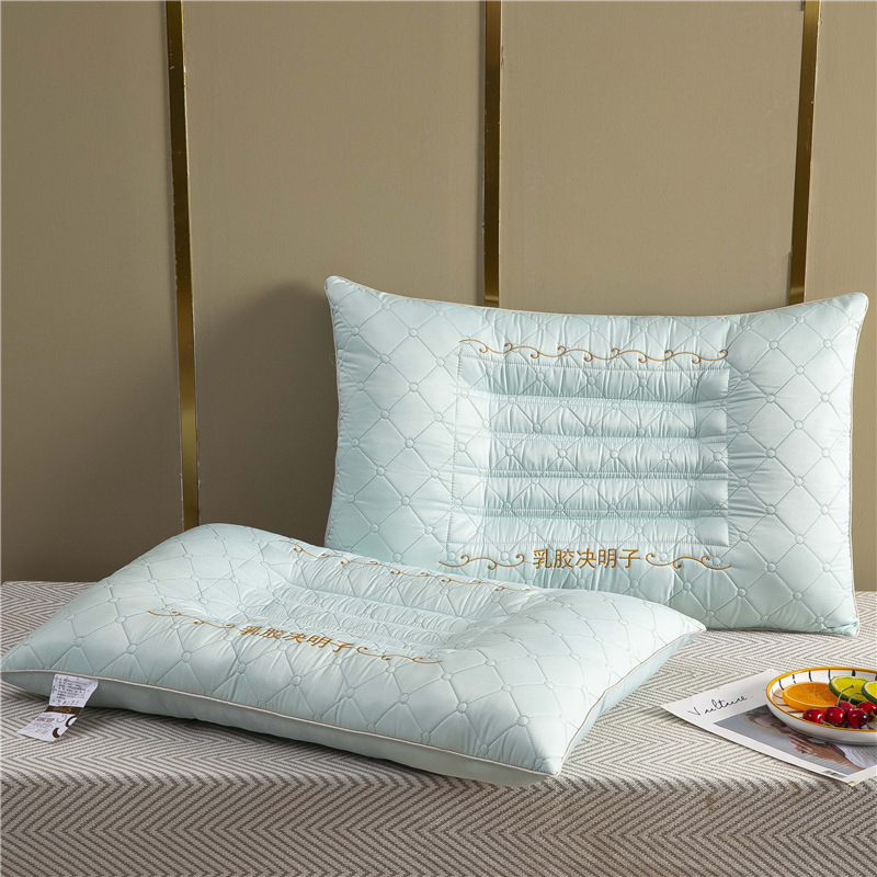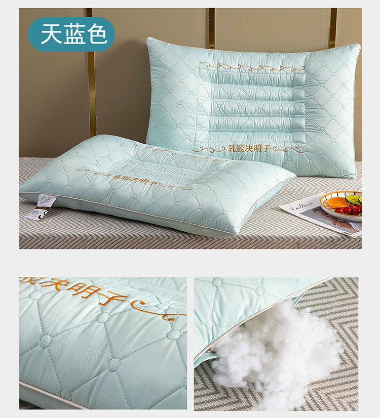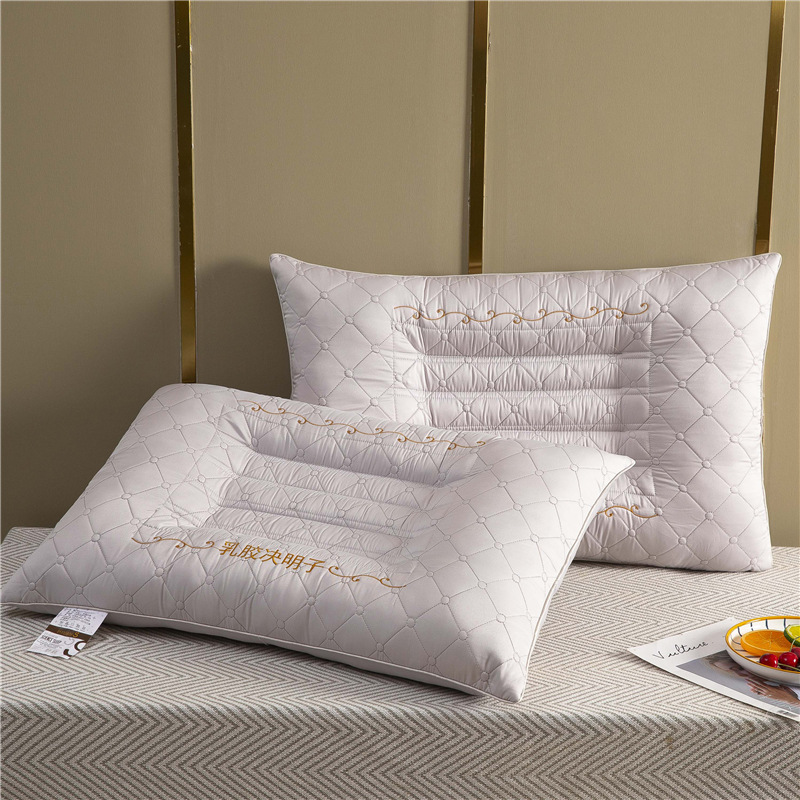 새로운 퀼트 자수 라텍스 계수나무씨 베개, 경추 보호 및 수면 보조 베개심, 가정용 싱글 사이드 수면 베개