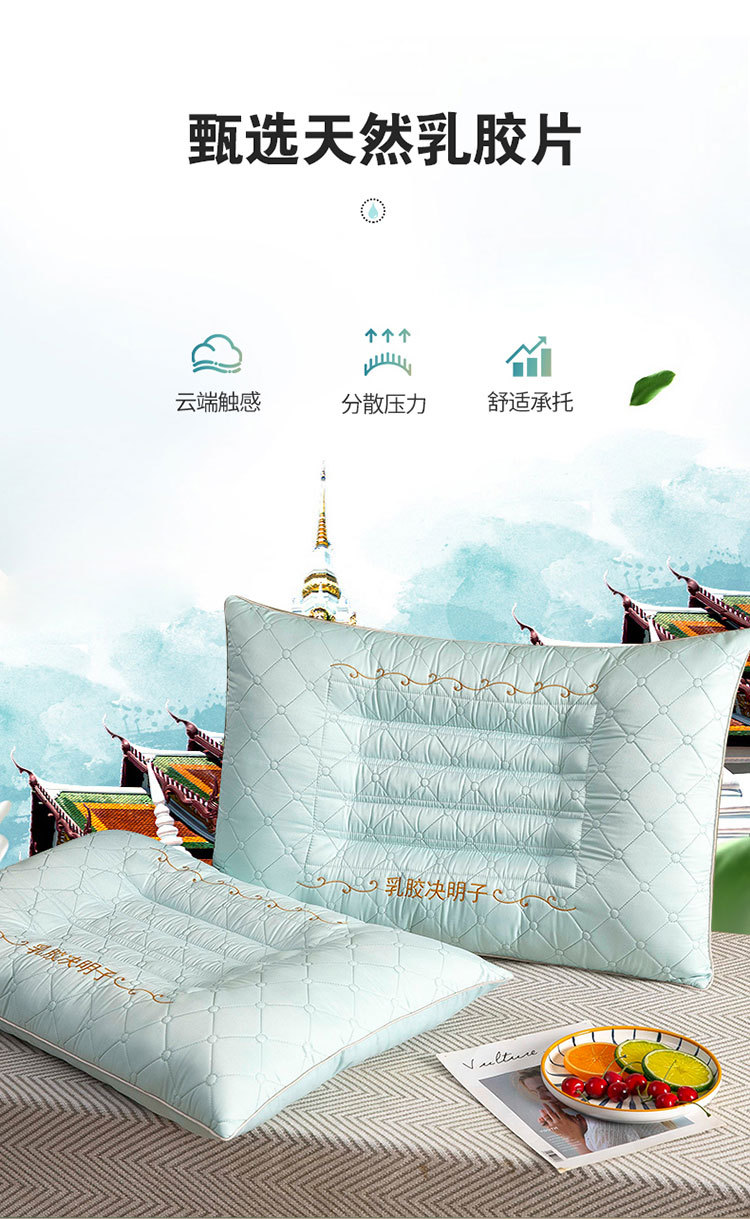 새로운 퀼트 자수 라텍스 계수나무씨 베개, 경추 보호 및 수면 보조 베개심, 가정용 싱글 사이드 수면 베개스토어 가기