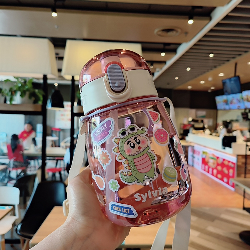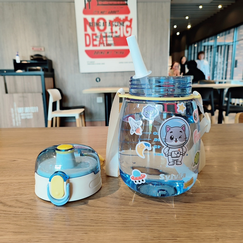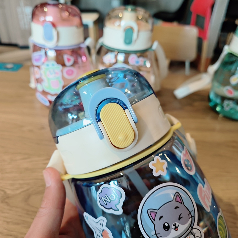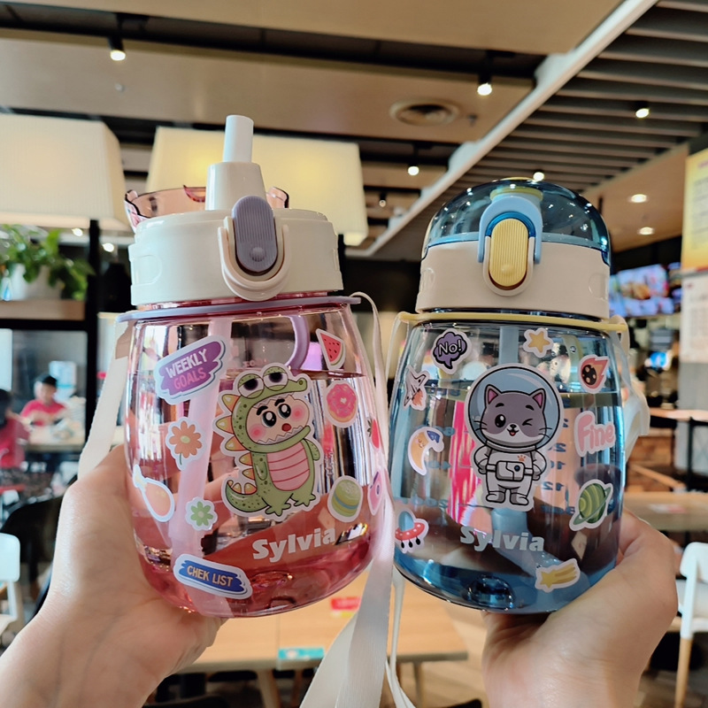 큰 배꼽 컵 여성 하이 컬러 값 대용량 톤 물병 귀여운 아동 학생 고온 저항 플라스틱 빨대 물 컵