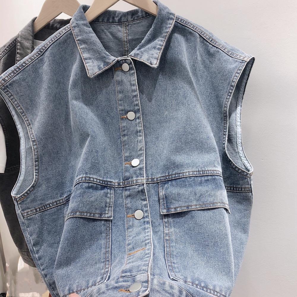 데님 조끼 빈티지 워싱 BF 스타일 툴링 데님 조끼 일본 커플 민소매 느슨한 모든 매치 재킷 여성용스토어 가기
