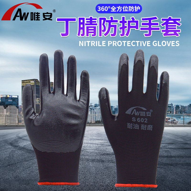 Wei An S602 13 핀 니트릴 함침 보호 장갑 내마모성 오일 방지 기계 석유 화학 페인트 노동 보호 손스토어 가기