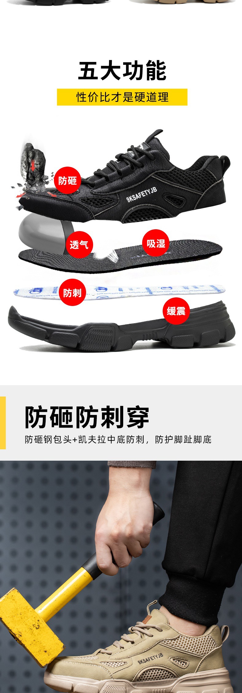 안전 신발 스틸 발가락 신발 남성 사계절 통기성 내마모성 작업화 여성의 스매싱 방지 및 피어싱 방지 안전화