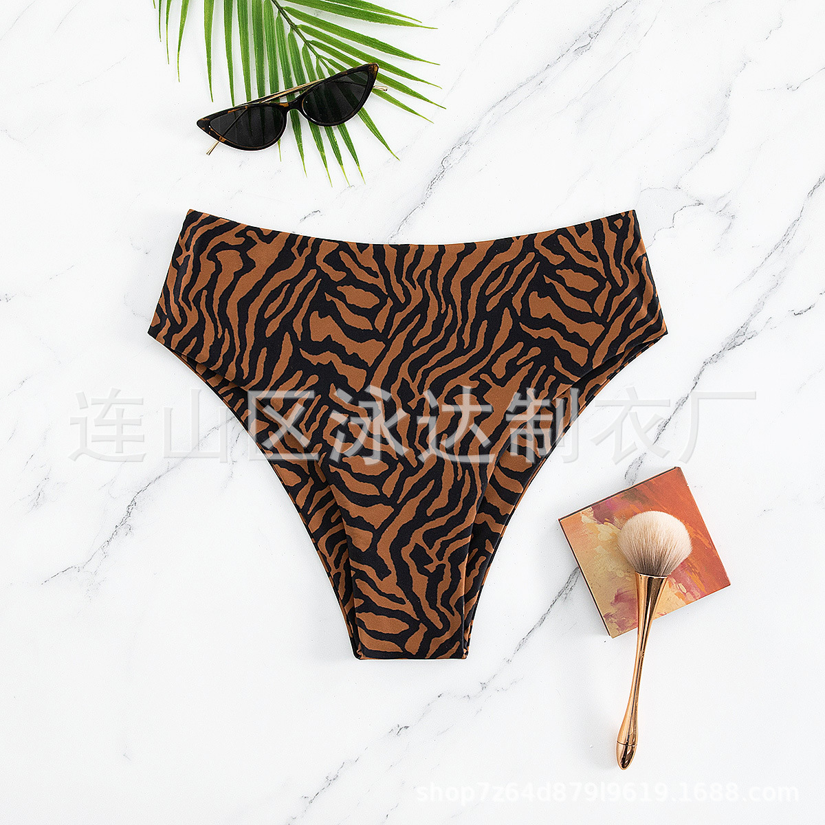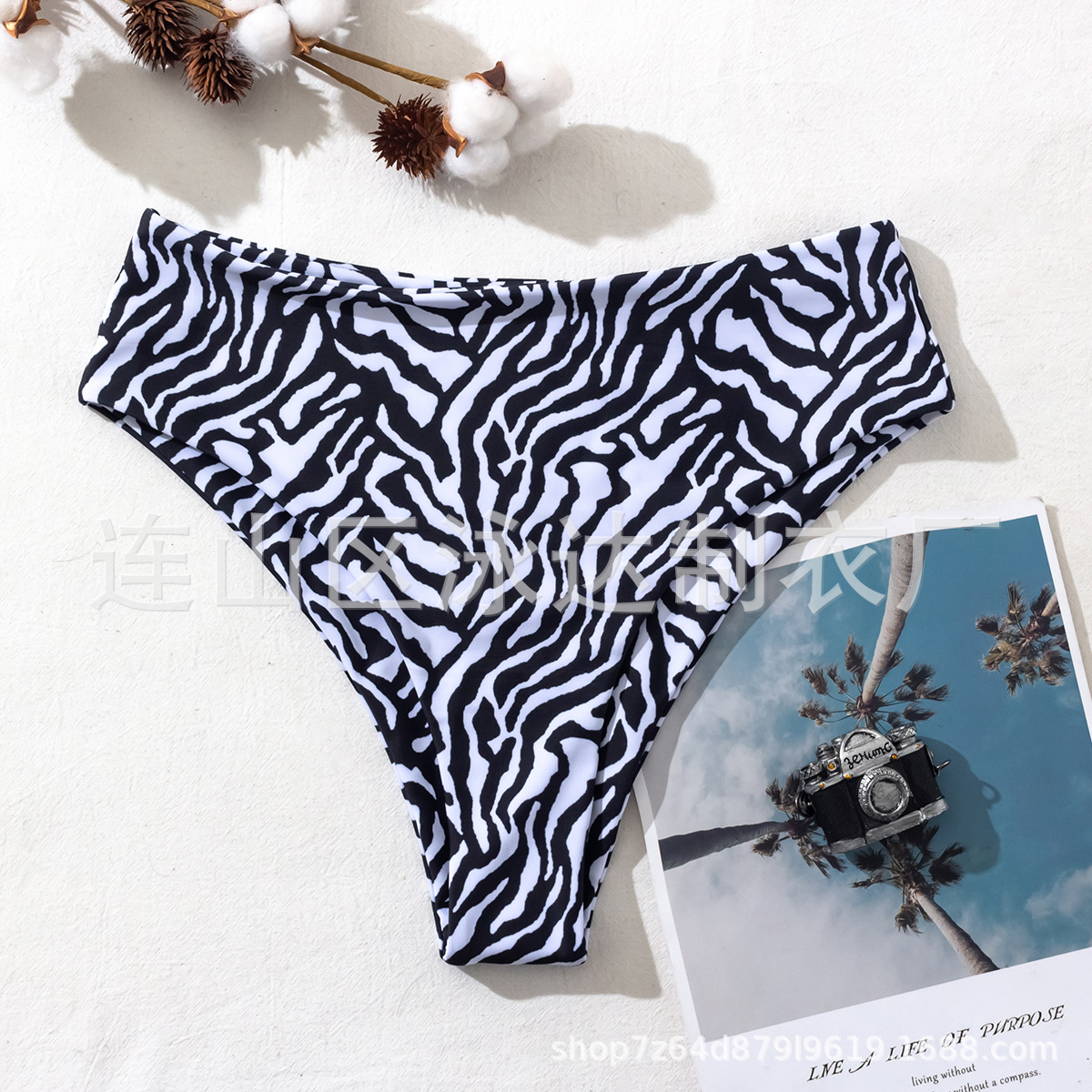 새로운 2023 유럽 및 미국 수영 트렁크 여성용 브리프 얼룩말 패턴 섹시한 엉덩이 슬리밍 주름 높은 허리 크로스 보더 수출스토어 가기