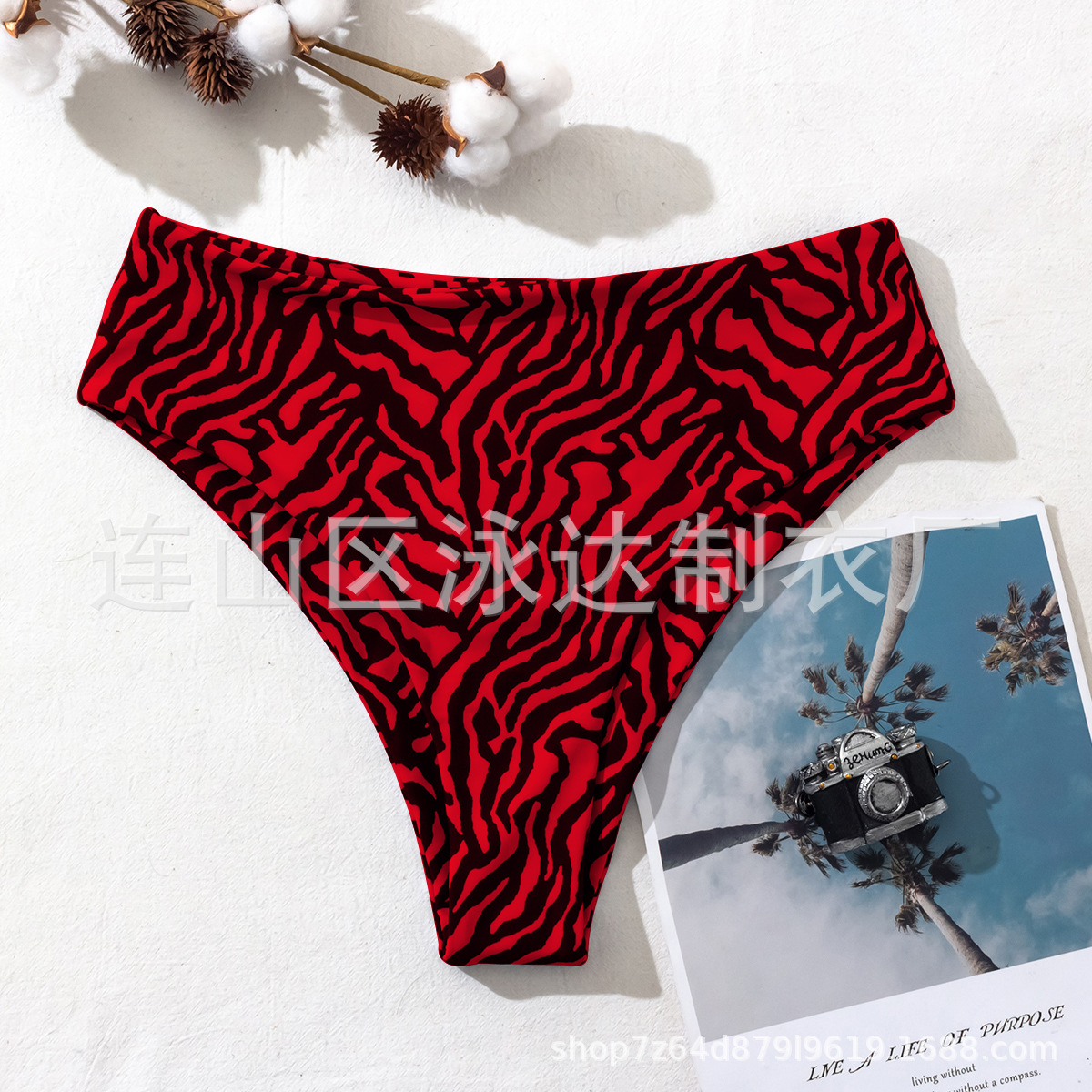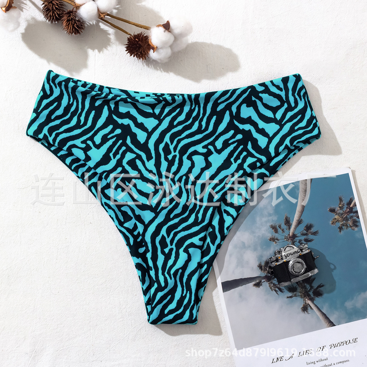 새로운 2023 유럽 및 미국 수영 트렁크 여성용 브리프 얼룩말 패턴 섹시한 엉덩이 슬리밍 주름 높은 허리 크로스 보더 수출