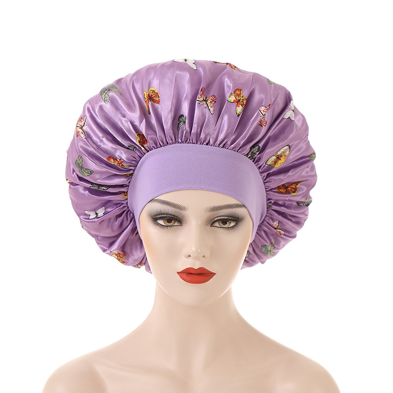 나비 스타일 아마존 베스트셀러 색상 새틴 밀크 실크 와이드 엣지 고탄력 수면 모자 보닛 캡