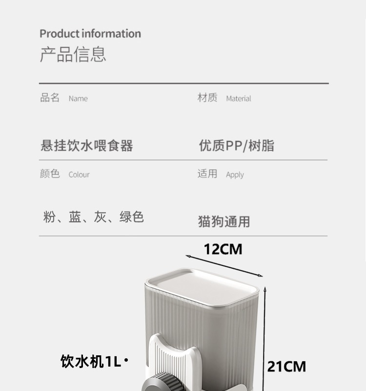 产品名称:悬挂饮水喂食器 单个重量:喂食375g/饮水440g