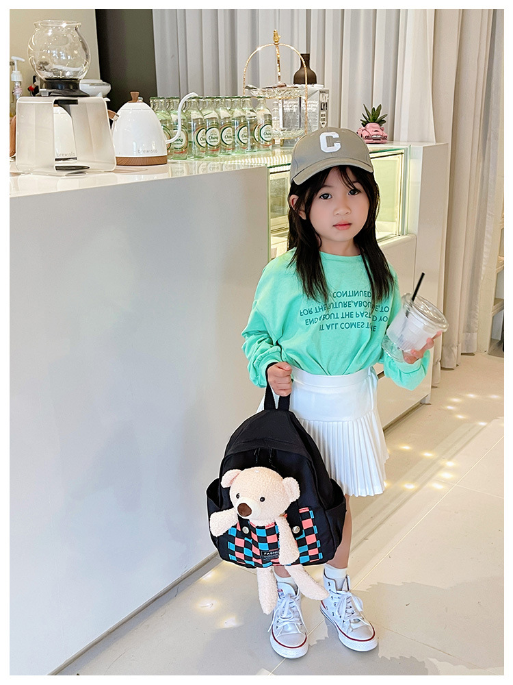 2023 봄 외출 캔버스 백팩을위한 새로운 어린이 작은 배낭 초등학생을위한 귀여운 곰 소녀 책가방스토어 가기