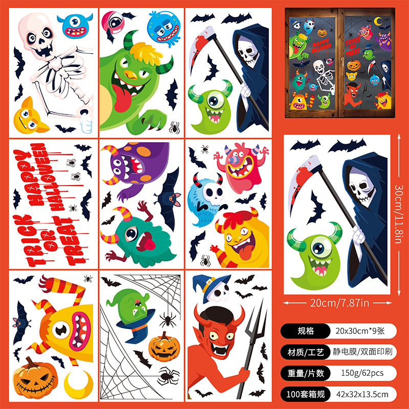 产品名称:可移除窗贴 产品包装:OPP包装 产品材质:PVC静电膜 100套装箱重量:大约15千克 箱规:42*32*13.5cm 产品规格:20*30cm*9张 量大价格更优惠欢迎新老客户光临 商品标价不含税,我们这边可以提供美工设计支持,款式图包提供等等,如需开票请另加税点,详情请咨询客服! 注意:墙贴发出时默认opp透明袋装平铺发货