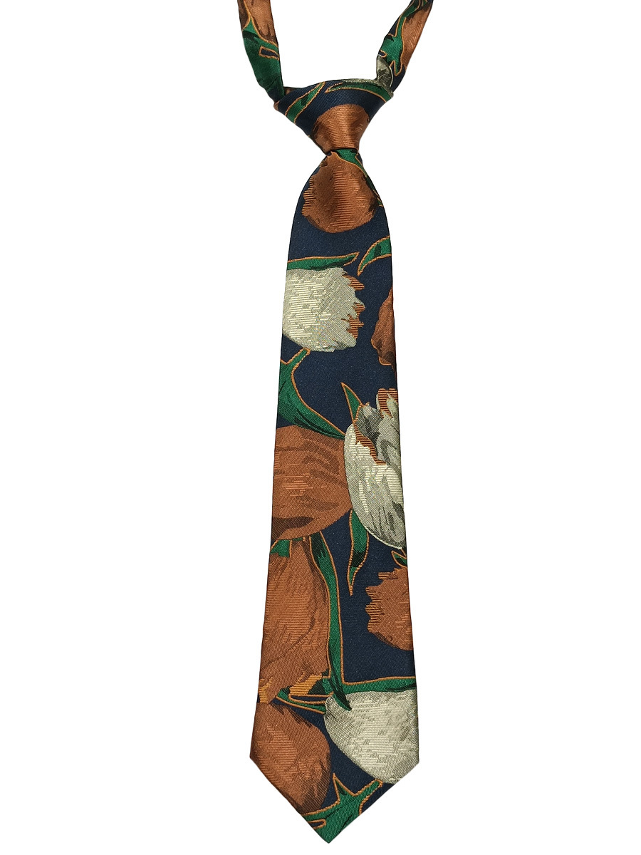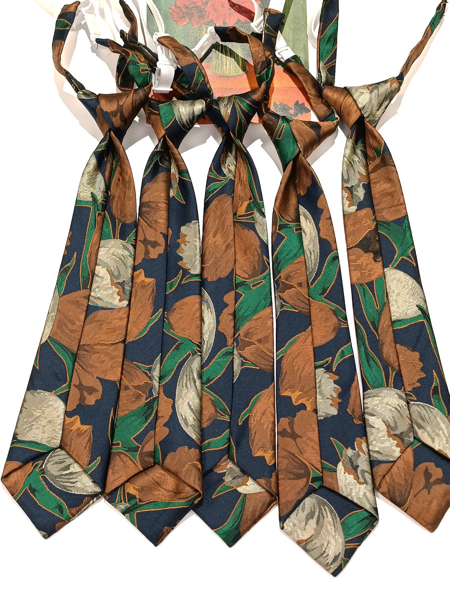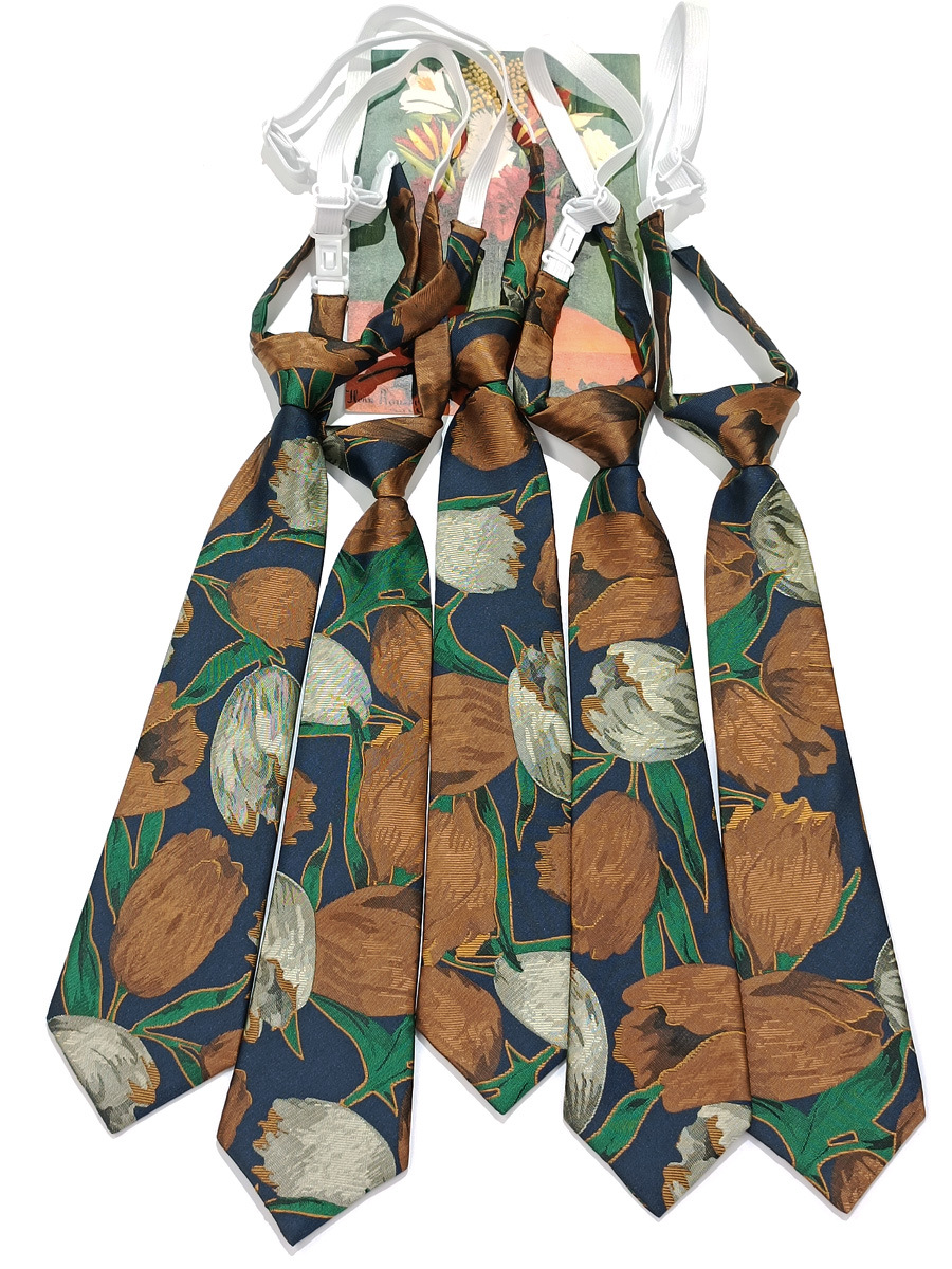 빈티지 튤립 꽃 작은 넥타이 여자의 매듭없는 짧은 학생 캐주얼 장식 다크 브라운 커피 패턴 유행스토어 가기