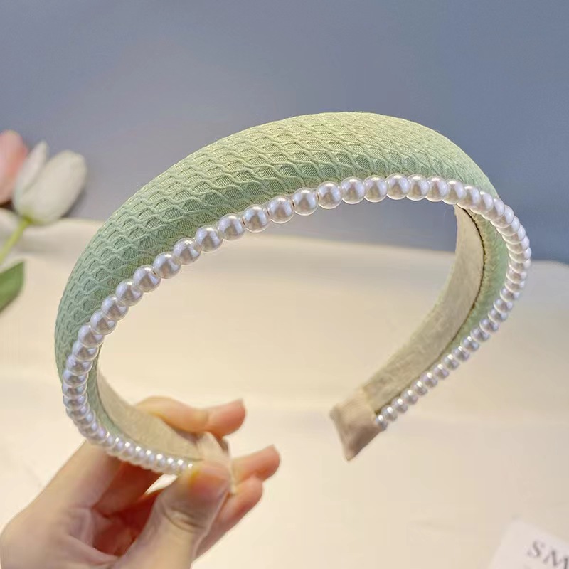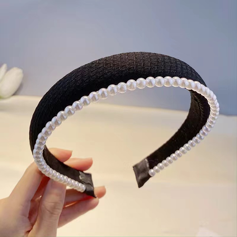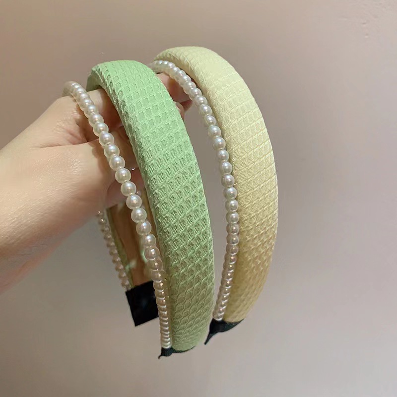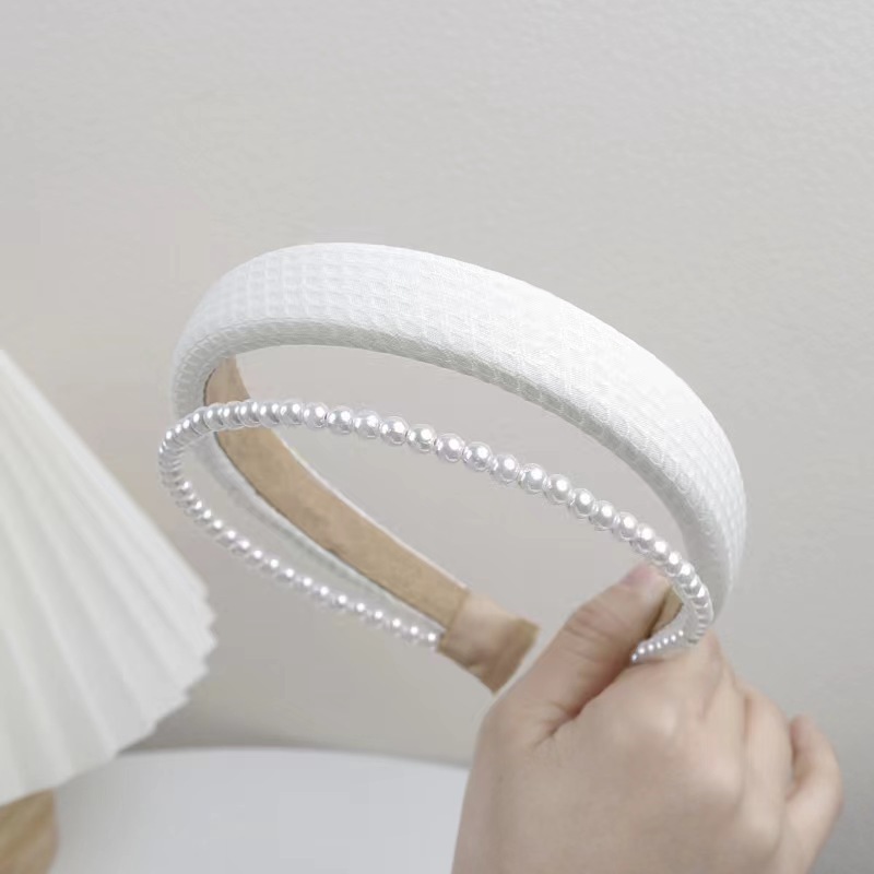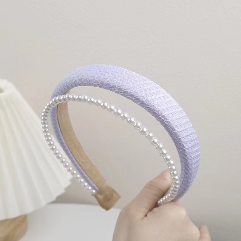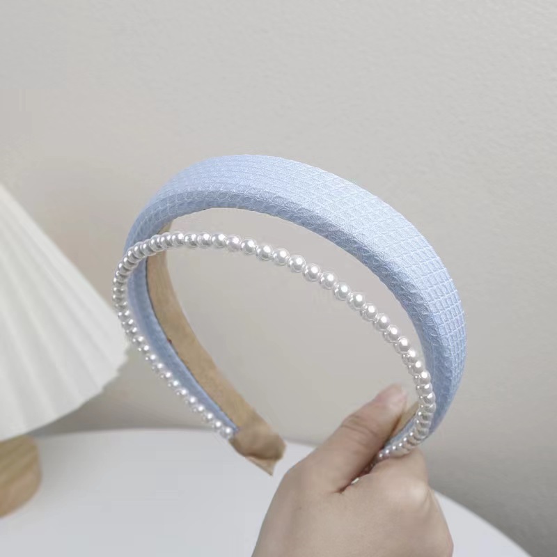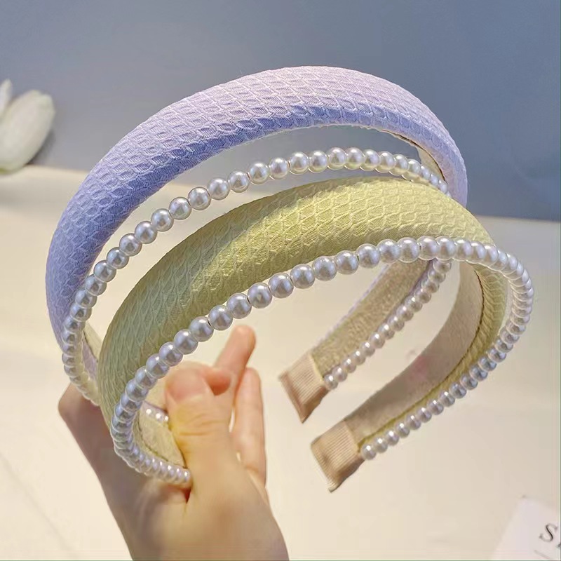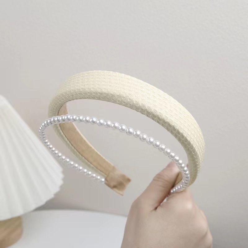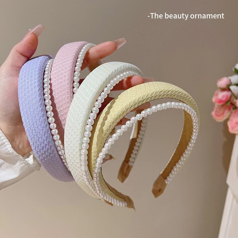 봄과 여름의 한국판 뉴 스타일 작은 향기 2 층 진주 스폰지 헤어밴드 심플 하이 스컬 탑 스위트 압력 헤어 액세서리 도매스토어 가기